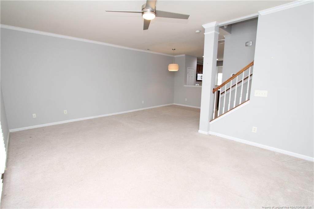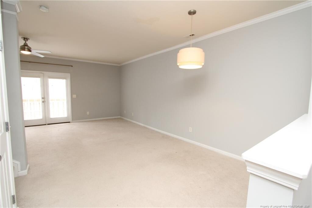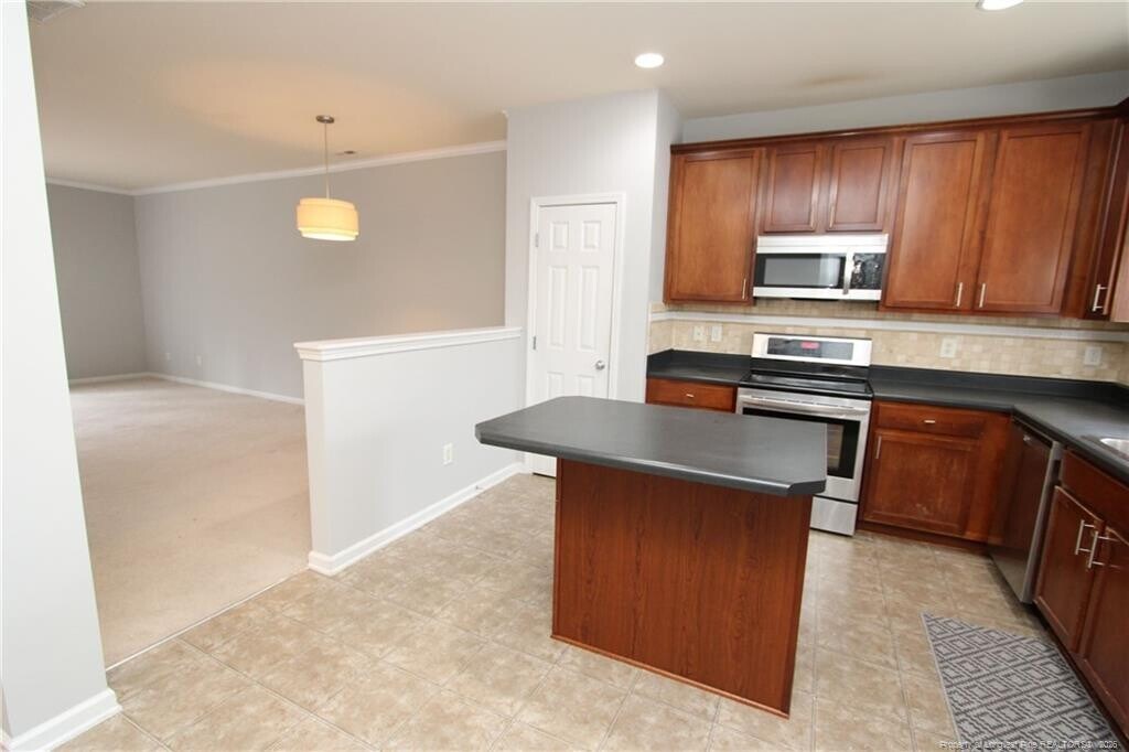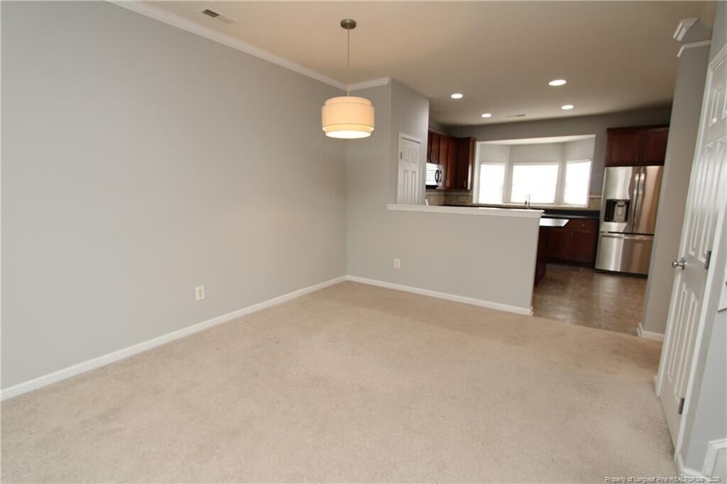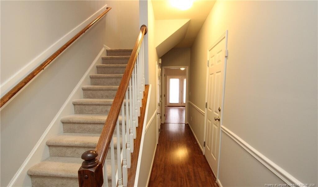 This charming townhouse is available immediately and nestled in a beautiful neighborhood located at the gateway to RTP. You're also conveniently located close to RDU, I-40, HWY 55/54, local schools, parks and much more. Upon arrival, you're greeted by a private driveway that leads to a one car garage and an adjoining covered front porch. As soon as you enter, you are greeted by a welcoming foyer that leads you past the interior access to the garage as well as a coveted first floor bedroom showcasing a sliding glass door, a full bathroom and a spacious, walk-in closet. Not in need of a 4th bedroom? No problem, you just found that home office or dedicated exercise space you've been searching for! Take a quick jaunt to the 2nd floor where you'll find yourself in a lovely, open-concept living space. Towards the front of the home, you'll enter a beautiful kitchen showcasing a full suite of sleek, stainless steel appliances (including a dual sink, refrigerator, dishwasher, microwave, and a brand-new smooth top oven). The kitchen also includes a pantry, a large bay window over the kitchen sink, stone look countertops with a tiled backsplash, recessed perimeter lighting and an island perfect for casual breakfast and entertaining. Don't miss the tucked-away powder room with a pedestal sink. The kitchen seamlessly intertwines with a perfectly proportioned dining space. This area is conveniently located adjacent to the kitchen and interconnects the living spaces. The result is a design perfectly suited for casual, everyday living and entertaining alike. The family room is quite spacious and furniture placement will be a breeze. You'll also love the direct access to the elevated rear deck overlooking a wooded buffer. The third floor is home to three more bedrooms as well as a conveniently-located laundry room with washer and dryer included for resident's use, so no more hauling clothes up or down the stairs. The primary bedroom features a vaulted ceiling, a ceiling fan/light combo, double picture windows, an expansive walk-in closet and an en-suite bathroom with a linen closet, a marble-topped vanity with dual sinks and a garden tub/shower. Bedrooms #2 & #3 are both generously proportioned with ample closet space, lovely natural light and easy access to a full hall bathroom.