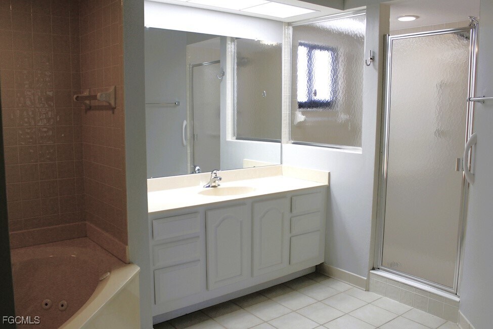 Spacious 3/BR,2/BA,1-car garage,end unit with spectacular golf-course view from your private,screened-in lanai is now available in the prestigious gated community of The Forest! This residence offers carpeting in living area & bedrooms,tile in kitchen & baths - freshly painted cabinets in kitchen,bar and bathrooms. Kitchen is spacious with room for a dinette + SS appliances! Formal dining,featured wet-bar and spacious living area. A spacious master bedroom,ensuites that offer two (2) vanities/sinks,walk-in shower and a separate soaking tub. The Forest is minutes to RSW Int'l Airport,restaurants and entertainment! Quality living plus location,it all starts here!