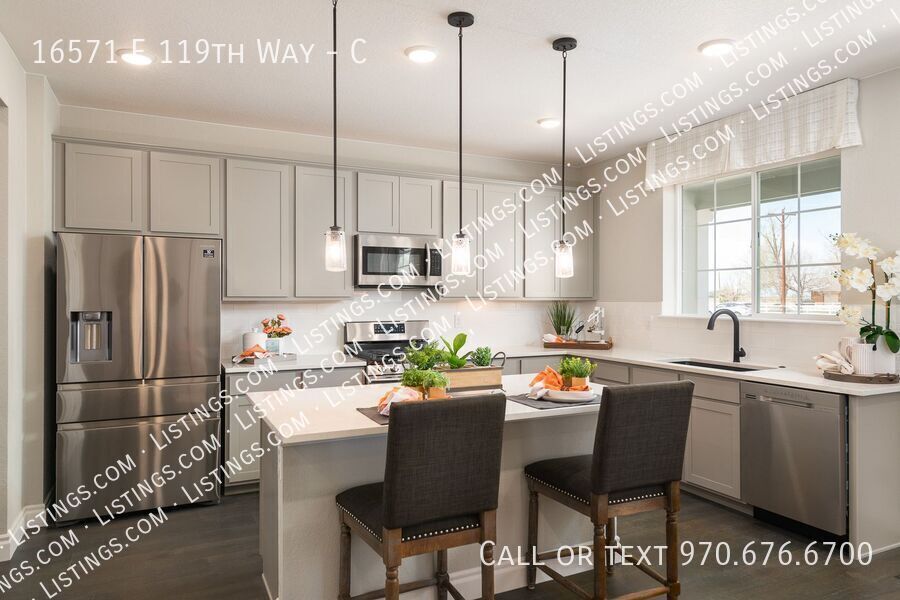 Awesome 2BD/3BA townhome in a great location in Commerce City. Convenient access to E-470 and DIA - Denver International Airport, and close to Buffalo Run Golf Course, Barr Lake, and Rocky Mountain Arsenal National Wildlife Refuge. Enjoy an open floor plan, a two-car attached garage, upstairs laundry, laminate wood flooring, stainless steel appliances and gas stove. Entertain with your over-sized kitchen island with granite counter tops. Upstairs enjoy your Primary suite with walk in closets and primary bath connected. School District 27-J: Elementary: Turnberry Elementary School, Otho E Stuart Middle School, Prairie View High School. Moving to Colorado and house-hunting? Skip the year-long lease and land softly with our flexible-term rental options! Perfect for those in-betweeners transferring to the Centennial State or searching for their dream home through our exclusive Tenant-Buyer Program. Enjoy the flexibility of a negotiable lease while you explore Colorado's neighborhoods and find your perfect fit. Just looking to rent? We also offer one-year and longer lease options for non-Tenant-Buyer Program participants. Contact us today to learn more about our Tenant-Buyer Program, long-term rental options, and available properties! Monthly admin fee equivalent to 1% of current rental rate. $250 one-time move in fee. 1) Applicant has the right to provide Brokerage with a Portable Tenant Screening Report (PTSR) that is not more than 30 days old, as defined in § 38-12-902(2.5), Colorado Revised Statutes; and 2) if Applicant provides Brokerage with a PTSR, Brokerage is prohibited from: a) charging Applicant a rental application fee; or b) charging Applicant a fee for Brokerage to access or use the PTSR 2 Car Garage Attached Ac Central A/C Central Ac Central Air Dryer Forced Air Forced Air Heating Furnace Two Car Garage Two Car Garage Attached Washer Washer/Dryer