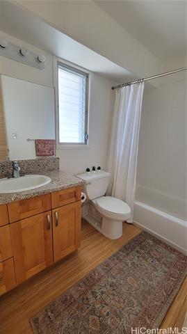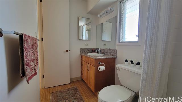 Freshly painted with vinyl plank flooring and carpeting in the living room and bedrooms. Large and spacious 636 sq. ft. interior plus 212 sq. ft covered lanai. One covered parking stall. Washer/dryer in the unit. Large closets and extra storage area with shelves. Quiet neighborhood with walking distance to the busline, and shops. Sorry, no pets, smoking or vaping allowed.