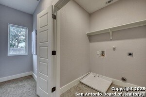 Welcome to a fabulous new construction designed with your comfort in mind, featuring a unique rear entry garage that enhances both convenience and curb appeal. As you approach, the home exudes a clean and inviting cabin-like charm from the front, drawing you inside. Step into a spacious living room where elegance and functionality meet. Enjoy the cooling breeze of a ceiling fan, the modern touch of recessed lighting, and the stunning wood flooring that flows seamlessly throughout the main level. This open-concept layout is perfect for entertaining guests or enjoying family time. The adjacent breakfast area, adorned with a stylish chandelier, invites you to start your day in a space that opens beautifully to the kitchen. Here, culinary dreams come to life with a spacious island perfect for bar seating, a stainless-steel gas range, and pendant lighting. The kitchen is a chef's delight with its charming farmhouse sink, quartz counters, pristine custom white cabinetry with crown molding, and a tasteful tile backsplash. A conveniently placed half bath on the main level adds to the home's functionality. Venture upstairs to find the primary suite, a serene retreat featuring a ceiling fan and an art niche. The ensuite bathroom offers a luxurious walk-in shower, a generously sized double vanity with tile accents, and a walk-in closet with built-in shelving for all your storage needs. Two additional bedrooms, each with ceiling fans, provide ample space for family or guests, with one featuring its own walk-in closet. The thoughtfully designed full secondary bathroom includes tasteful tile accents, and the hallway's transom windows fill the space with natural light. For added convenience, the laundry room is strategically located on the second floor. Throughout this level, you'll appreciate the cozy touch of five-panel doors, enhancing the home's warm ambiance. This exceptional home perfectly combines style, functionality, and comfort. Don't miss the opportunity to make it yours.