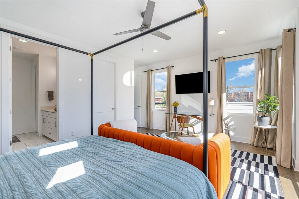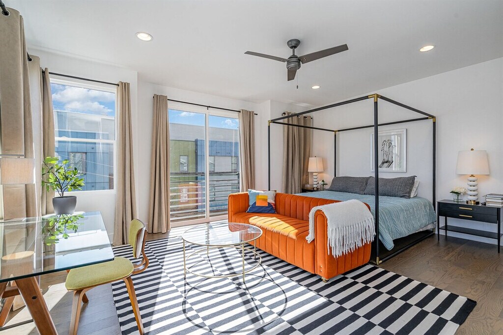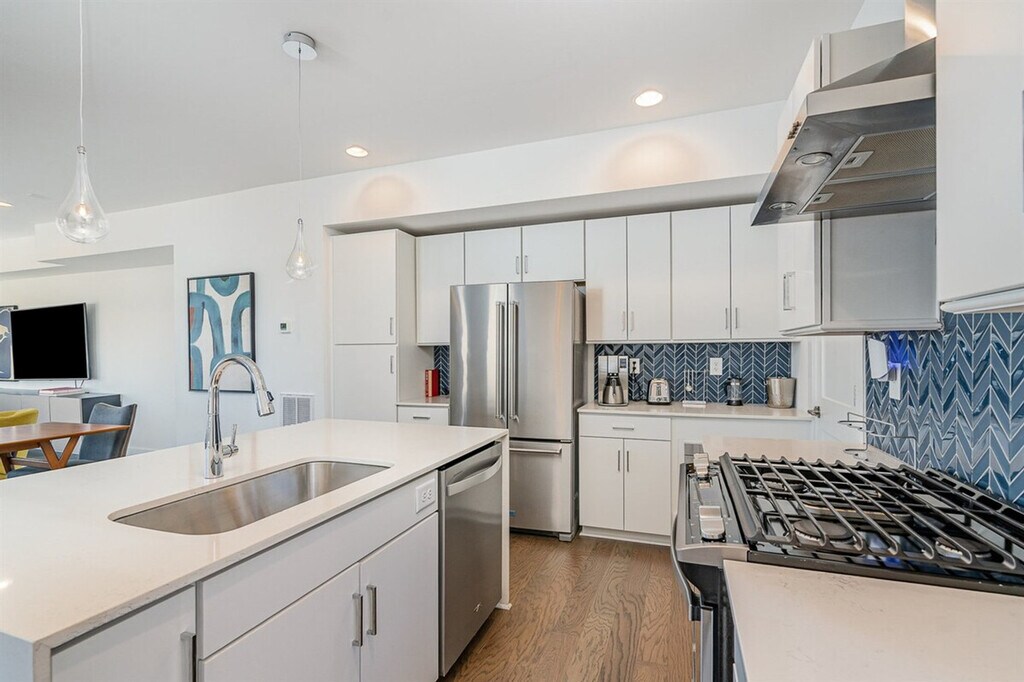 Feel at home in this 3-bedroom townhome in West Charlotte, offering upscale comfort just minutes from Uptown. Each bedroom has a private en-suite bath, with 2 king suites and a queen room. Enjoy a large executive-style living room with home theater, chef’s kitchen, and rooftop deck with views of the Bank of America Stadium. Garage parking is available. Walk to the light rail or drive to Uptown in 3-5 minutes. With high-end furnishings and a quiet location, it’s perfect for group stays and weekend getaways. [SI]