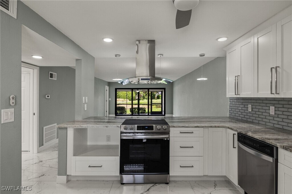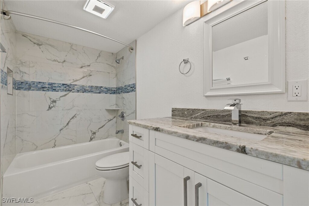 Indulge in the tranquility of this completely refurbished 2 bedroom,2 bath end unit condo. As you step inside,you'll be greeted by a charming open-concept living space that flows seamlessly from the kitchen to the living room and dining area. The kitchen is fully equipped with stainless steel appliances,double shaker cabinetry and granite countertops. Impact rated sliding glass doors opens up to the screened in back patio,in which you can enjoy boasting views of the beautiful golf course within the sought-after The Forest community. Nestled just off US 41,this condo's prime location ensures effortless reach to Southwest Florida International Airport,FGCU,I-75 and a plethora of shopping and dining options.