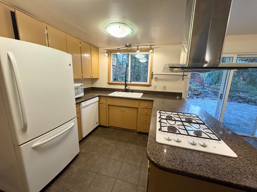 Mid-century modern tri-level with loads of charm and character. Located on a large lot with lawn, large patio, deck and space for RV and or boat parking. No HOA. This classic home features 3 bedrooms plus a den/office/4th bedroom plus additional living, entry room, 2 full bathrooms, downstairs is a large cozy rec room with gas fireplace and wet, bar, sink. Large living room with vaulted ceilings and lots of windows open to deck and large backyard with lawn and mature landscaping. Kitchen features, gas cooktop and includes all appliances. Long front driveway with extra parking spaces Oversized 2-car garage with ample storage space and newer garage door. Top rated schools: Liberty High (10) Maywood Middle (9) Briarwood Elem (8)* verify with school district transportation dept. as boundaries can change