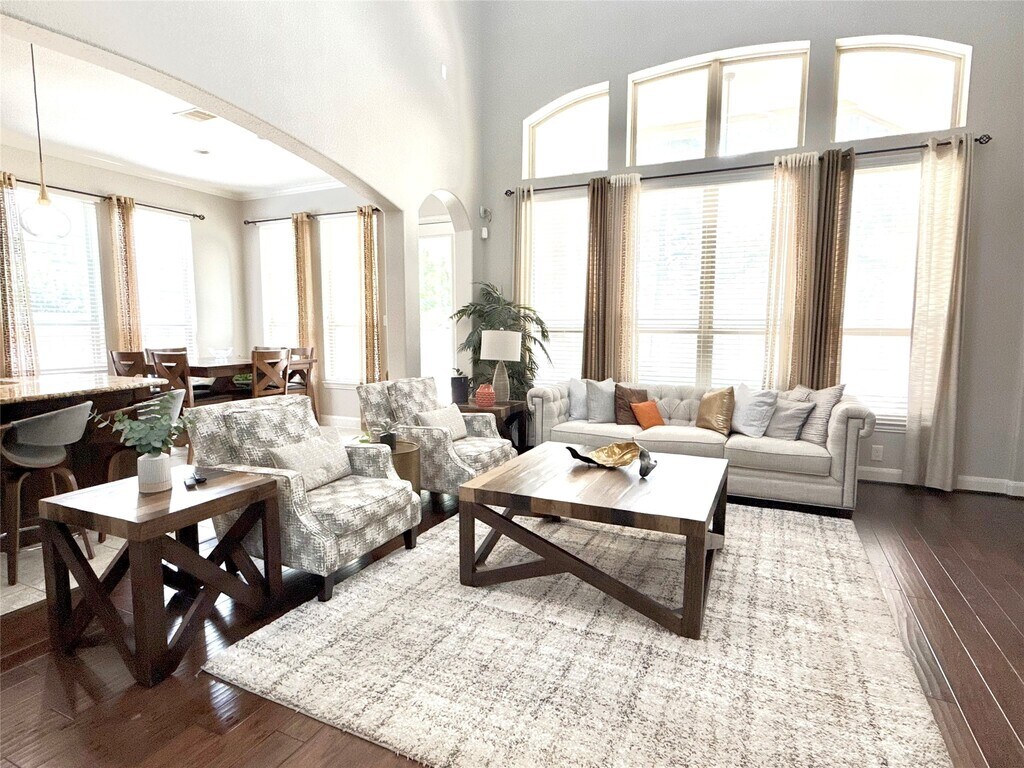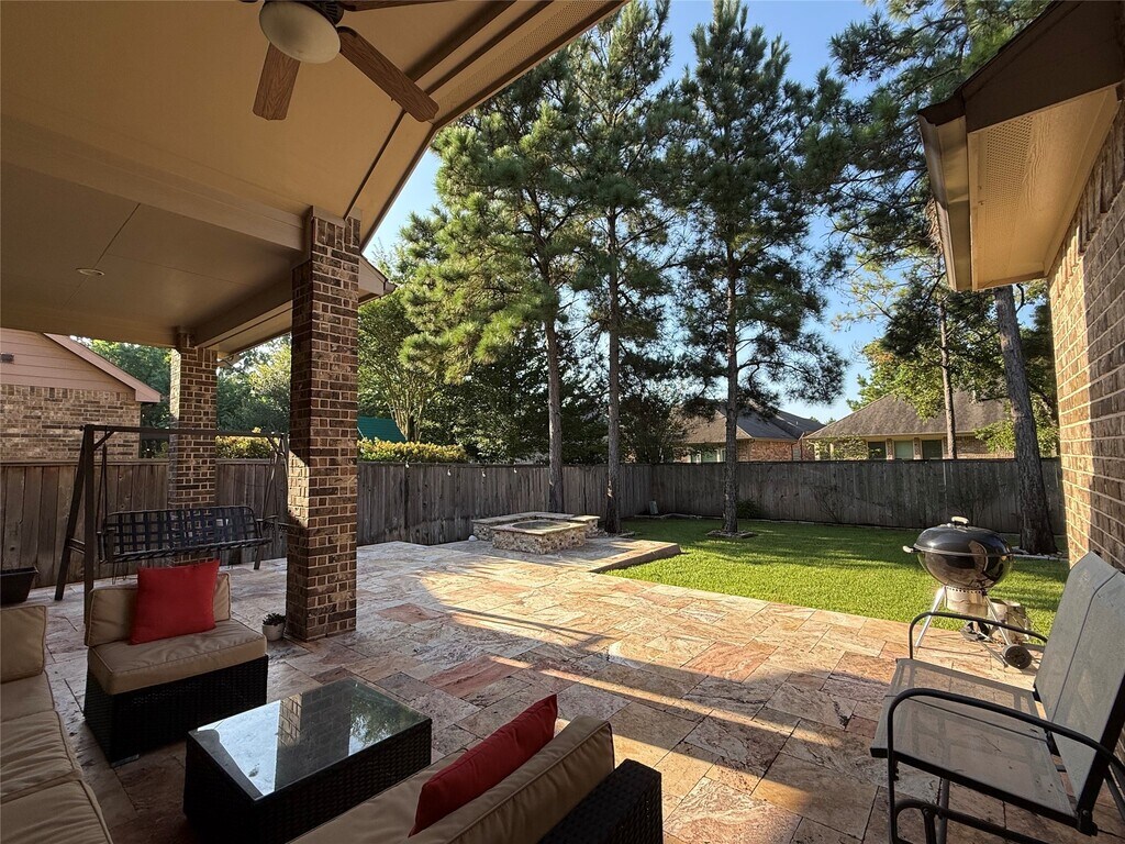 Prime location within the Village of Creekside Park. Walking distance to shopping,restaurants and so much more! Zoned to Creekside Forest Elementary! This well maintained 2 story with 4 bedrooms,3 1/2 baths,game room,study and 2 car garage comes with refrigerator,washer & dryer. Wood floors through main areas of dining,living and study. Kitchen features large island with granite countertops,stainless steel appliances,gas cooktop,updated pendant lighting and open to breakfast and living area for ease of entertaining. Tall ceilings and large bright windows in living area,cast stone gas log fireplace and large area for entertainment center. Dining room is spacious and elegant for all your gatherings. Study at front of home with French doors. Primary retreat with crown molding,large windows,carpet and spa like bathroom with walk-in in closet. Game room and 3 beds upstairs. Fantastic back yard with covered patio and extended tile patio for outdoor fun! MLS# 56033566