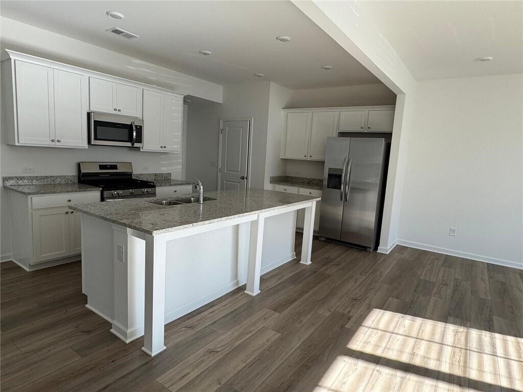 This move-in ready 3-bedroom,2.5-bathroom spacious end-unit townhouse offers modern comfort and convenience in a prime location. The main level features an open floor plan designed for both relaxation and entertaining,with a spacious family room,dining area,and a fully equipped kitchen showcasing stylish cabinetry,expansive countertops,a large island,oversized sink,and designer lighting. A private rear patio extends the living space outdoors,creating the perfect spot to unwind. Upstairs,the owner’s suite is thoughtfully placed at the back of the home for added privacy,overlooking the backyard and complete with a walk-in closet and private bath. Two additional bedrooms are located at the front of the home with a full bathroom nearby,while a convenient laundry room completes the upper level. Abundant natural light fills the home through a wall of windows,enhancing the bright and airy feel throughout. A two-car garage provides versatile storage space,and the home includes a refrigerator,washer,and dryer for your convenience. Residences at Gateway is a vibrant,walkable community located near Barrow Crossing and downtown Winder,offering quick access to shopping,dining,and outdoor recreation at Fort Yargo State Park and The Chimneys Golf Course !