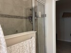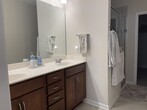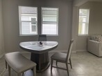 Beautiful like-new side of duplex. This 2 bedroom, 2 bathroom home has all tile floors, wood cabinets, granite counters and side entry. This is a quiet neighborhood, with a serene back lanai where you can see nature close and personal. Master bedroom has a gorgeous walk in shower, and large walk in closet. Second bedroom is roomy as well. Main space is open concept with large island to cook and make memories. 2 car attached garage. Neighborhood pool for your usage also.