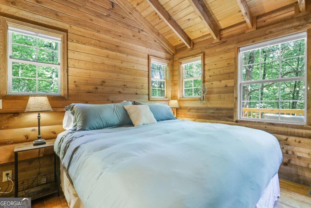 Escape to serenity with this enchanting retreat now available for lease! Nestled in the tranquil woods just minutes from downtown Blue Ridge, this fully furnished haven perfectly blends natural beauty with modern amenities. Step into a cozy yet spacious home featuring 2 inviting bedrooms, 2 full bathrooms, an office study with a picture-window view, and open layout designed for relaxation and inspiration. The expansive deck surrounded by trees is your front-row seat to breathtaking forest views-perfect for morning coffee, al fresco dinners, or simply soaking in the peaceful surroundings. Unwind after a long day in the bubbling hot tub, sip a glass of wine by the propane fire-pit, cook out on the BBQ or enjoy the thoughtfully curated interior with plush beds and smart TVs and high-speed wi-fi. The kitchen has been completely remodeled with all new appliances and is fully stocked for those who like to cook. Cabin also has a brand new water heater, HVAC, nest remote thermostat and refurbished hot tub! The neighborhood has walking paths and a picturesque pond down the road. Whether you're looking for a creative escape, extended family vacation or a quiet place to call home, this retreat is move-in ready and waiting for you. Don't miss this rare opportunity-schedule your tour today and start living the dream! MLS ID 10677232
