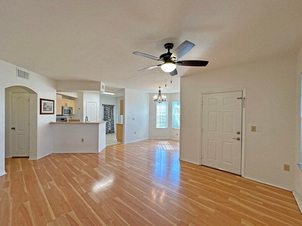 Step into this beautifully designed 2-bedroom, 2-bath, first-floor corner unit offering the perfect combination of comfort and style. Featuring upgraded flooring and an open-concept layout, spacious living and dining areas are filled with natural light, kitchen features stainless steel appliances, while the master suite includes a walk-in closet, a roman tub with separate shower. Enjoy a covered patio accessible from both the master bedroom and kitchen areas, ideal for relaxation. Additional highlights include laundry room with full-size washer and dryer, abundant storage throughout. Your unit also comes with the added benefit of an assigned parking spot, ensuring both comfort and practicality in your everyday living. Experience the pinnacle of contemporary living where modern