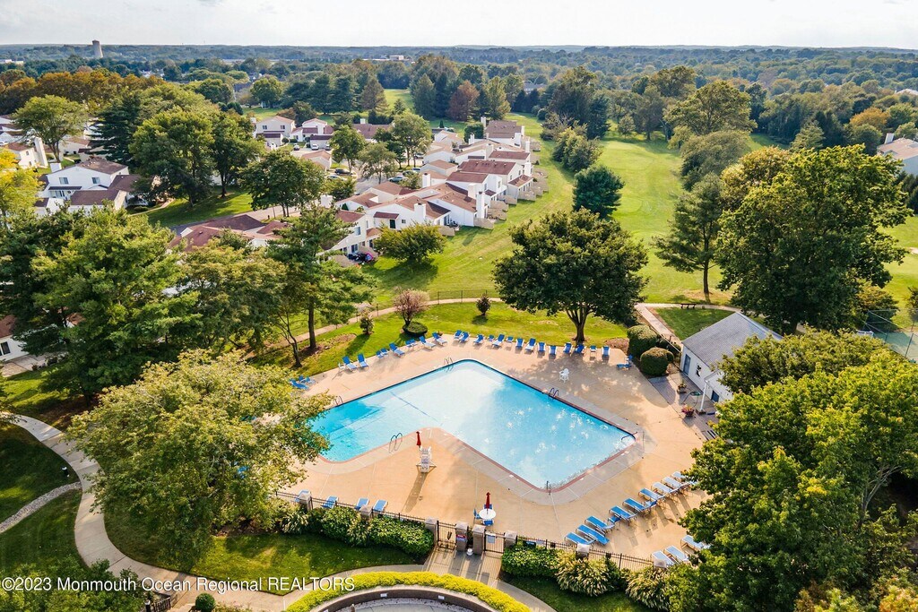 Desirable Raintree Gated Community in the heart of Freehold Twp. Upper level condo featuring 2 bed and 2-Baths. Open Chestnut model with cathedral ceilings. Enter into the 2 story foyer w/ closet. The open concept kitchen features gorgeous wood cabinets with granite and stainless app. Enjoy eating meals at the breakfast bar. Open Dining Room Living room with sliders to outdoor patio area w/ storage closet. Master bedroom with walk in closet and attached master bath. Second bedroom offers plenty of space. Stackable washer/dryer in unit. Community offers many outdoor,clubhouse with gym. Tennis and golf. Attached to Raintree shopping center filled with stores and restaurants. Bus to NYC.