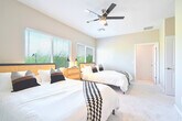 Feel at home in this spacious suite, just minutes from Surprise Stadium. This new townhome has room for everyone to relax. This apartment features a private outdoor area with a putting green and games, a 65" smart TV, comfortable couches, a fully equipped kitchen, plush bedding, new stainless steel appliances, utensils, pots and pans, coffee mugs, a coffee maker and coffee filters, a kettle and tea bags, wine glasses and an opener. The bathrooms include a modern half-bathroom on the main level, a full bathroom upstairs with a glass shower door, and an en-suite full bathroom with a bathtub. There is easy access to the garage and some fun games in the unit. Guests can also enjoy the common area with a barbeque and seasonally heated pool close to the unit. There is a $10 fee per guest after 5 guests in each unit. Centrally located for all your activities planned for your trip to Surprise, the surrounding area of Surprise Stadium offers a blend of sports facilities, outdoor spaces, dining options, and entertainment venues, creating a vibrant and dynamic environment for residents and visitors alike. In addition to the stadium, the Surprise Recreation Campus features several recreational facilities such as baseball fields, soccer fields, basketball courts, and playgrounds. The Surprise Tennis and Racquet Complex is situated adjacent to the stadium. Surprise Community Park provides green spaces, picnic areas, walking trails, and a fishing lake. There are numerous dining options nearby, ranging from fast-food chains to casual dining restaurants, and several shopping centers and retail outlets are within a short driving distance. Visitors attending events at Surprise Stadium have access to various hotels and accommodations in the vicinity. No shoes are to be worn inside the home, especially on the carpeted areas. Quiet hours start at 10 pm on weeknights and 11 pm on weekends, and end at 7 am. Evidence of pets inside the property will result in a $100 fine charged to guests. Parties and/or large noisy social gatherings are prohibited, and there is a $250 surcharge charged to groups that are deceitful about the use of the house. Guests partying will be asked to vacate the property immediately without refund. Smoking is not allowed indoors, and you will be fined $500 if you violate this policy. A surcharge of $100 per undeclared guest per night will be applied for unapproved guests. There is a $75 cleaning fee for any pets. An $50.00/hour penalty will be applied if you fail to check-out by 10am or by the agreed upon check-out time. Includes a comfortable office chair and a desk with a lamp. [SI]