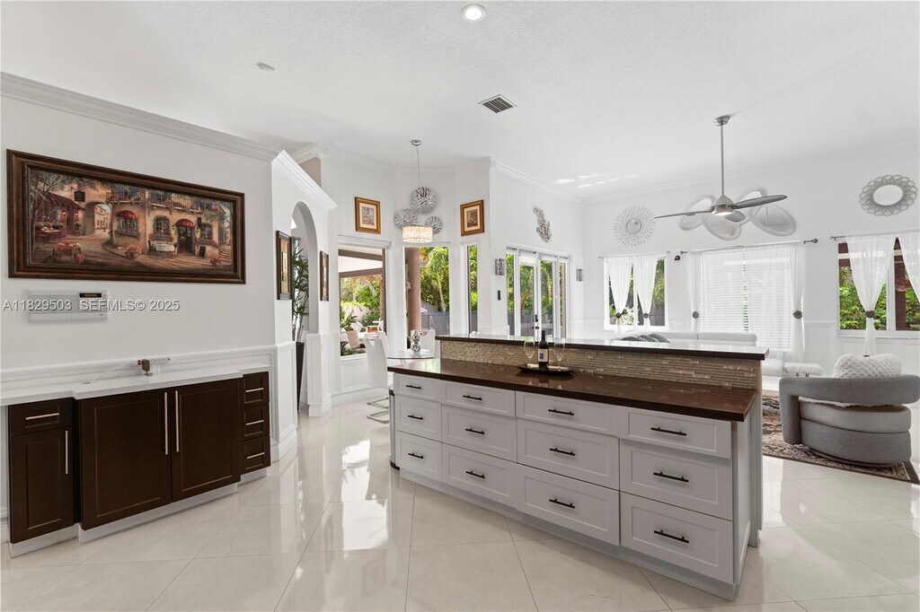 Step into timeless elegance at this meticulously remodeled residence, where high design meets relaxed Florida living. Situated on a generous 15,000 sq. lot in one of Palmetto Bay's most exclusive enclaves, this home offers curated interiors, soaring vaulted ceilings, and bespoke finishes throughout. The chef's kitchen is a masterpiece crafted with sleek quartz countertops, custom cabinetry, and premium appliances. Spacious living areas flow effortlessly into the backyard oasis, where a sparkling pool, custom-built pergola, and fully outfitted outdoor kitchen set the stage for unforgettable entertaining. Whether you're hosting under the stars or enjoying quiet moments in your private retreat, this home offers a rare blend of sophistication, comfort, and lifestyle. MLS # A11829503