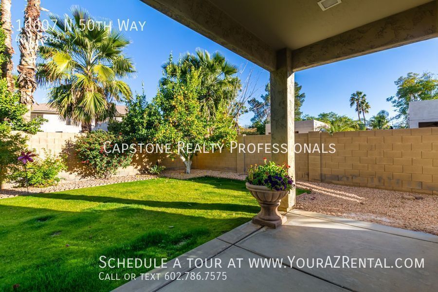 This 4-bedroom, 2-bathroom home offers the perfect combination of comfort, style, and convenience. Featuring an open floor plan with a fireplace in the living room, this home is ideal for both everyday living and entertaining. With wood, tile, and carpet flooring throughout, it balances elegance and durability while providing a warm, inviting atmosphere. Key Features: Modern Kitchen: Equipped with stainless steel appliances, granite countertops, ample cabinet space, and an eat-in dining area, perfect for family meals or entertaining guests. Spacious Master Suite: Includes a walk-in closet, dual vanity, separate shower and soaking tub, and direct access to the backyard. Comfort & Convenience: Ceiling fans throughout, large-capacity washer & dryer in a separate laundry room, and well-maintained flooring. Outdoor Living: Enjoy a lush green backyard with a BBQ area, ideal for weekend relaxation or entertaining. The front yard features neat, easy-care landscaping, and the home includes a two-car garage. Prime Scottsdale Location Located in a highly desirable neighborhood, this home is close to shopping, dining, and entertainment, with easy access to the 51 and 101 freeways for a quick commute. Enjoy the perfect balance of suburban tranquility and city convenience. Available for immediate move-in! Don’t miss out on this incredible opportunity. Schedule a tour today and make this your next home! -- Monthly Fee: Resident Benefit Package $49.99 Security Deposit: Equal to one months rent Cleaning Deposit: $275.00 Pet Deposit: $200.00 per pet One Time Lease Administrative Fee: $150.00 Carbon Dioxide Detector Community Pool Dryer Full Master Bathroom Gated Community Granite Countertops Irrigation System Master Bedroom: Split Ro System Separate Shower And Tub Smoke Detectors Walk In Pantry Washer Water Softener Wood Floor Tiles
