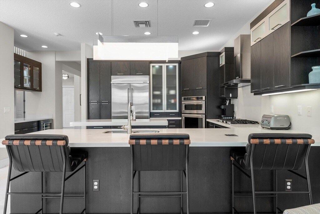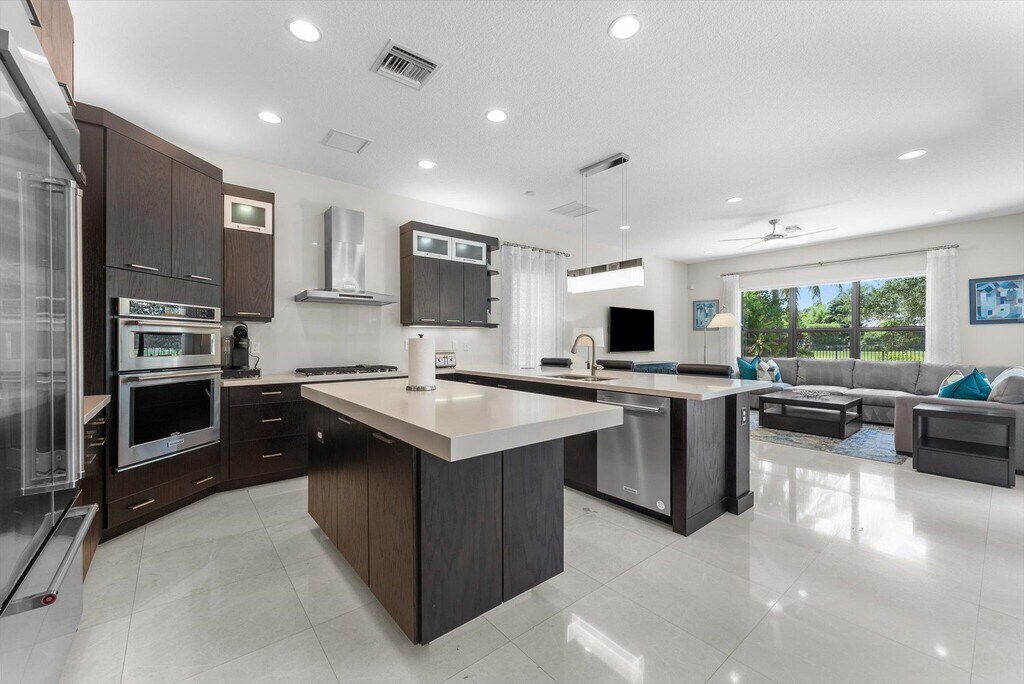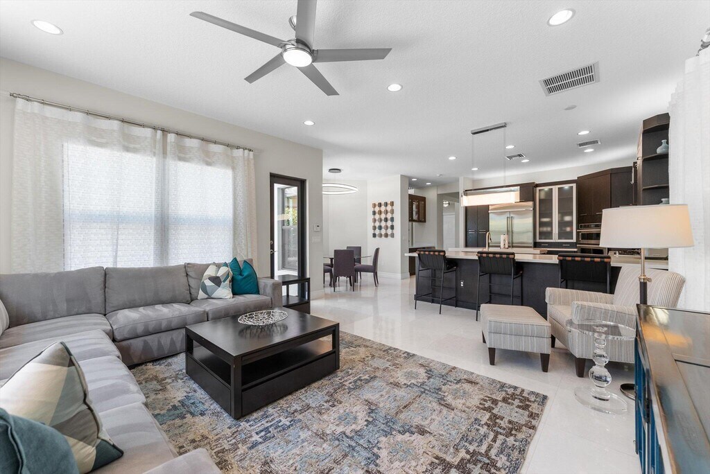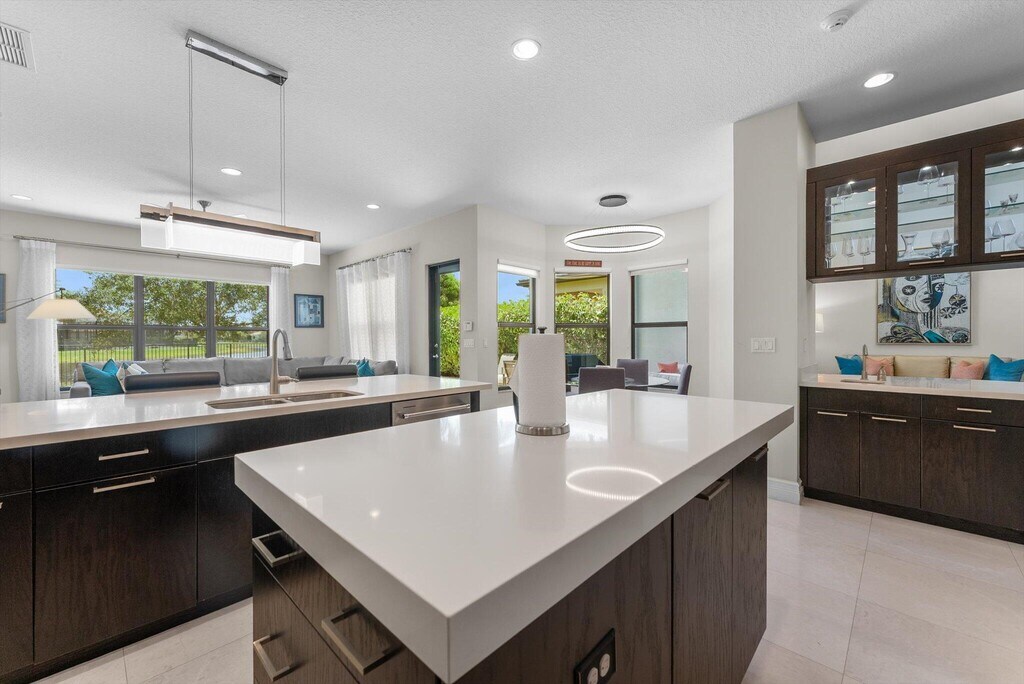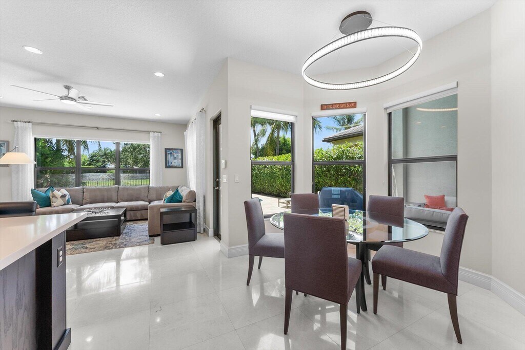 Experience the ultimate in luxury living with this fully furnished 4 BR, 4 BA pool home in the exclusive gated community of Seven Bridges. Designed for comfort and style, this home offers expansive living spaces with soaring ceilings and an open, airy layout. A formal dining room and wet bar create the perfect setting for entertaining, while the chef's kitchen is equipped with premium stainless steel appliances, double ovens, and a casual dining area ideal for everyday living. The oversized primary suite provides features two walk-in closets and a spa-inspired bathroom. Step outside to a private, fenced backyard with a sparkling pool and beautiful lake views. The home also includes a 2-car garage and is ideally located near the Turnpike, Delray Marketplace, shopping, and dining.