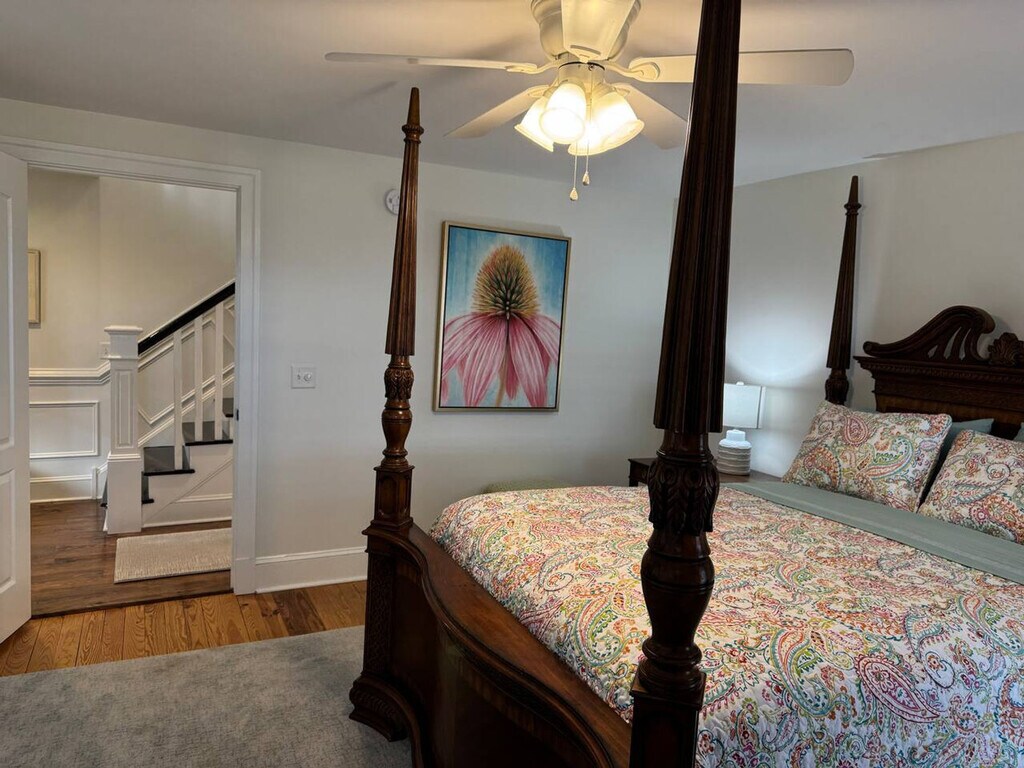The advertised rate of $4,216/month is the lowest available price, based on a 1 month(s) and 2 day(s) stay with a move-in date of February 21, 2026. Rates vary depending on the duration of stay, season, and other parameters. For exact pricing and additional pricing components, please visit our website and enter your desired move-in and move-out dates. The rate is applicable when billed upfront; it can be higher if billed in multiple payments. The Roost at Meadow Glen exudes a timeless elegance with its warm wooden floors, sophisticated decor, and tastefully furnished spaces. This charming farmhouse, located near Charlottesville in Ruckersville, VA, sits on an active cattle farm and accommodates up to 8 guests with 4 bedrooms. The home includes 2 full bathrooms and offers amenities like a fully equipped chef's kitchen, a spacious dining area, and a cozy lounge with serene views of the surrounding countryside. Additional amenities include broadband internet, air conditioning, central heating, and facilities for laundry, making it a family-friendly option. Guests can enjoy comfort in the spacious bedrooms, each outfitted with plush bedding and classic furnishings. The large, fully equipped kitchen and expansive dining area are perfect for preparing and enjoying meals made from local produce. A cozy lounge inside offers peaceful views of the surrounding countryside. Pets are welcome, making it a family-friendly option. As a service, today, you can order fresh beef, pork, and goat meat. The Roost at Meadows Glen is a charming farmhouse near Charlottesville, in Ruckersville, VA, featuring a blend of elegance and rustic comfort. This property accommodates up to 8 guests with 4 bedrooms, each furnished with plush bedding. This is a working farm. Guests and leashed pets are welcome to use the front yard spaces, but are not allowed in the pastures, barn, or barn area for safety reasons. Do not climb or touch the fences, especially electric ones, to avoid injuries. Please do not feed, pet, or approach farm animals. Restricted areas include the barn area and garden and raised bed areas unless accompanied by farm staff. Please park all vehicles in designated areas in front of the rocks to avoid obstructing the driveway, with a two-vehicle limit. All pets are to be on a leash at all times when not inside the farmhouse, and pet waste must be collected and properly disposed of. Smoking and vaping is prohibited across the entire property to maintain a tobacco-free environment and ensure the health of guests and the cleanliness of the farm. Please use the designated main entrance for entering and exiting the inn, as the back entrance is reserved for staff use only. The office sits below the kitchen and is locked off from the house, with minimal time spent in this area. Guests can contact the hosts via the contact details provided upon booking. [SI]