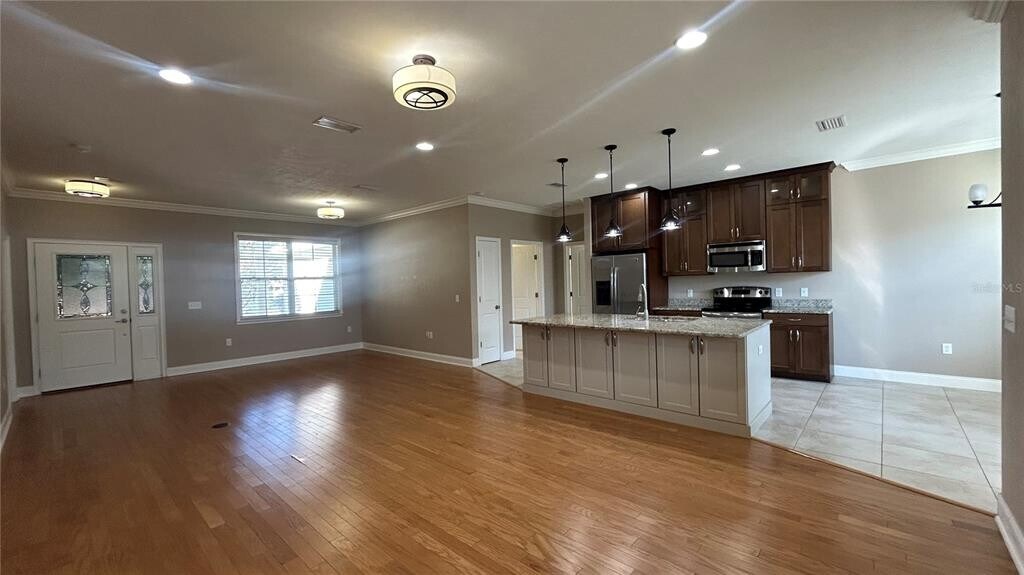 Oak Ridge 4/2 with Garage in High Springs The home features an open-concept,split-bedroom floor plan with approximately 1,731 sq. ft. of living space,9-foot ceilings,and crown molding in the main living areas. Enjoy cooking in a kitchen equipped with granite countertops,solid wood cabinets with soft-close drawers,a large island with bar seating,and stainless steel appliances (including range,disposal,and microwave). The house is built with energy-efficient features,including a tankless water heater,insulated windows,and central heating and cooling,to help save on utility costs. A spacious primary bedroom on the first level features an en-suite bathroom with a large tub,tiled shower,and dual vanity sinks. The property boasts a fully fenced backyard,a front porch,and a back patio,perfect for relaxing or entertaining. The neighborhood features sidewalks for leisurely strolls. Pick your own fruit at home from the many established fruit trees. The Oak Ridge community is ideally located just off Highway US-441,providing an easy commute to Gainesville,Lake City,San Felasco Tech City,Progress Park,and North Florida Regional. It is only minutes from I-75,a new Publix supermarket,and the area's popular natural springs and parks. A two-car attached garage provides ample parking and storage space. This beautiful,move-in-ready home offers a blend of style,comfort,and convenience. Don't miss this opportunity! MLS# GC535941