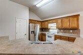 Wonderful large kitchen open to dining and living room. Fireplace in living room. Ceramic tile in all living areas,carpet in bedrooms. Master bedroom has double vanity and garden tub with separate shower. Close to elementary and middle school for NBISD. Close to shopping and IH 35.