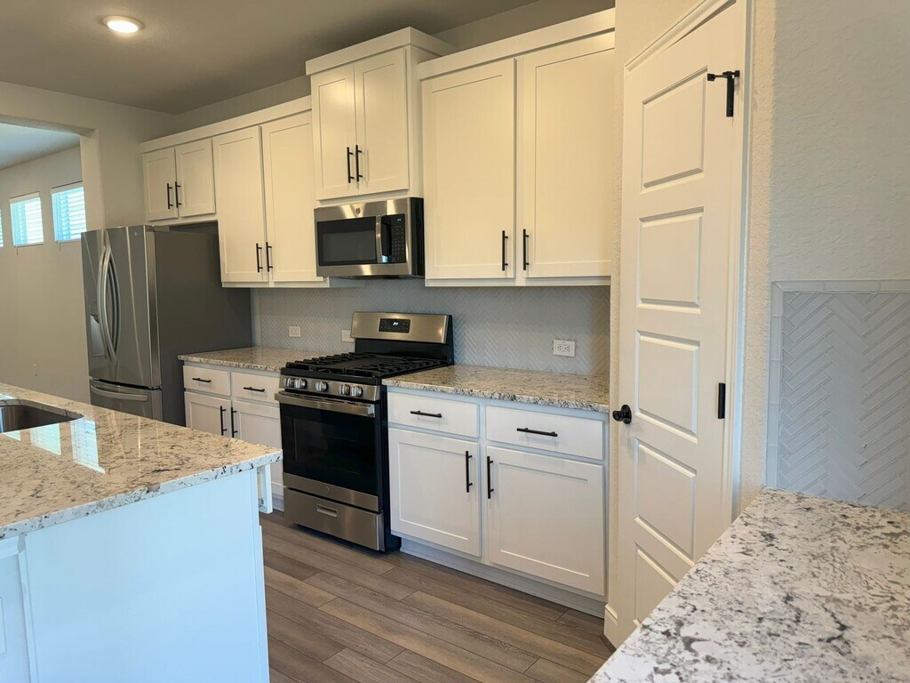 Welcome to 16622 Daylight Lane, your dream home in the prestigious community of Sunrise Village! Nestled on a private greenbelt lot, this contemporary Rialto-built home combines timeless elegance with modern comfort. Step inside to soaring eleven-foot ceilings and an airy great room filled with natural light, highlighted by LVP flooring, a wall of windows, and a cozy living area. The open-concept layout seamlessly connects the kitchen, dining, and living spaces, creating the perfect setting for both entertaining and everyday living. The spacious primary suite offers a private retreat with a walk-in closet, luxurious walk-in shower, double vanities with quartz counters, and abundant storage. On the opposite side of the home, three additional bedrooms provide flexibility for family and guests—one with its own ensuite bath. The chef’s kitchen is a true highlight, featuring granite counters, a glass chevron-patterned backsplash, a center island, pendant lighting, gas cooking, a deep single-bowl sink, built-in microwave, and a generous walk-in pantry. An office or flex room adds versatility, ideal for working from home, a media room, or gym. Builder upgrades include extended LVP flooring in the primary suite, stylish black plumbing and light fixtures, and separate vanities. Step outside to enjoy the covered patio with peaceful greenbelt views and no rear neighbors. Perfectly located in Selma, this home offers easy access to The Forum, IKEA, the airport, downtown, parks, shopping, and restaurants—everything you need is just minutes away! Two small or medium dogs accepted, sorry no cats. Our Resident Benefit Package ($30/month) offers convenient services to help you stay on top of your home and financial needs such as air filter delivery, credit reporting, fraud alerts and more! Submit applications:
