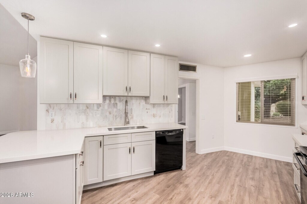 This home was remodeled with the Homeowner in mind. Fully remodeled kitchen with Quartz Counter,Beautiful Marble backsplash,stainless steel appliances (includes refrigerator). New soft close cabinets with tons of storage,Open to dining with breakfast bar and farmhouse sink. Both bathrooms were remodeled top to bottom and include Walk-in luxury showers,linen closets,new toilets and vanities. LVP in all areas except Tile in bathrooms,all new windows and window coverings. Huge living room with 10' ceilings and family room that most use as an office. New slider leads to concrete patio surrounded by art. Turf so no maintenance. One car extended garage with storage on both sides,Washer and Dryer included as well as laundry sink. Professionally cleaned inside and out. Owner Agent