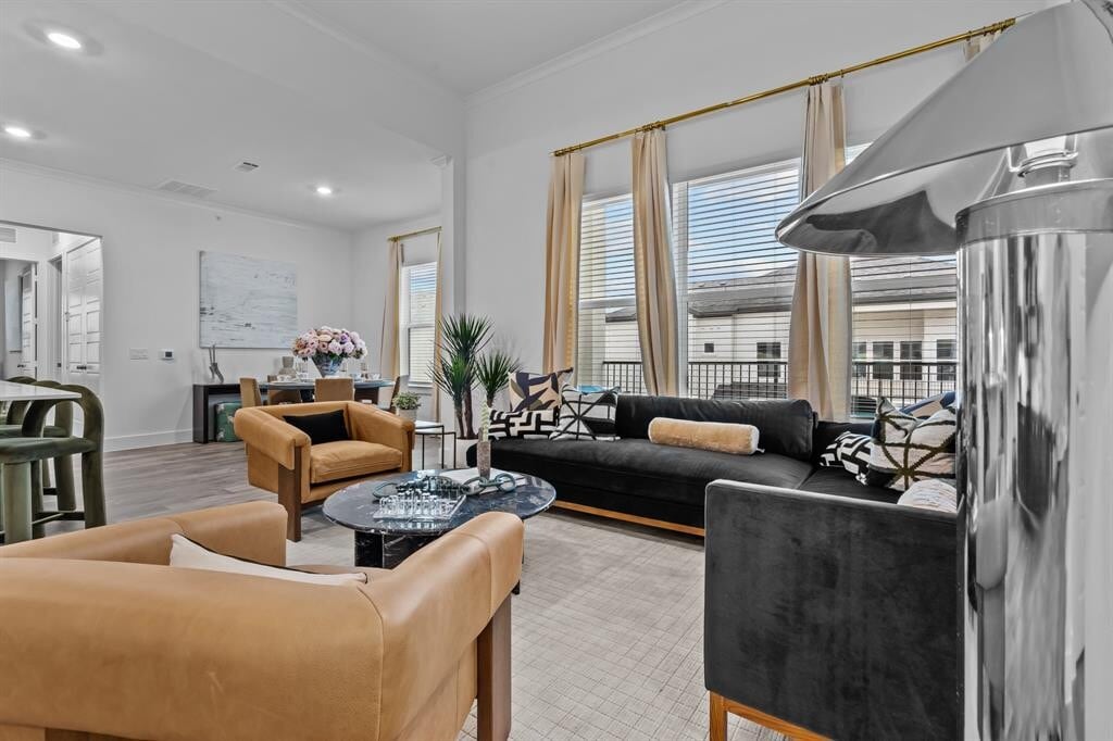 Enjoy access to a 6,000 square foot community clubhouse complete with 24/7 state-of-the-art fitness clubs, business center, tanning facility, and an expansive resort-style swimming pool complete with tanning decks and private cabanas and Starbucks® Wi-Fi Café. Attached garages available in most units, Homes feature extensive crown molding, abundant natural light, brushed nickel fixtures, and quartz countertops in kitchens and baths.10-foot ceilings to wide plank flooring and rich crown moldings, designer kitchen cabinetry, stainless-steel appliances, quartz countertops, programmable thermostats and ceiling fans. MLS ID 5546928