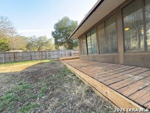 BEAUTIFUL ONE STORY 3 bedroom + Florida Room. This home sit on a large Cul-de-sac lot in the popular NEISD. This home has just been completely painting inside has Luxury laminate vinyl wood flooring. No carpet! The Florida room is a huge plus and you can also enjoy a large deck and large back yard. All appliances stay in the home, refrigerator, stove, microwave, washer & dryer. The home also has a 2 car garage and a long drive way that makes parking easy. This location in Long Creek is great! Very close to to Loop 1604 & Bulverde Rd. then you are just minutes away to Hwy 281 & IH 35. Close to Randolph AFB, RBFCU, Alamo College NE Campus & the North side Medical center. Ready for immediate move-in.