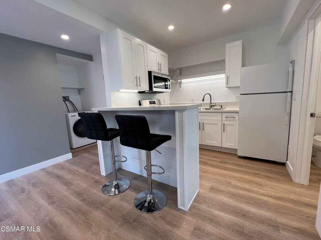 Welcome to this beautiful ADU in the heart of Thousand Oaks! With around 395 square feet of beautifully designed space, this unit has everything you need. The bright interior features a modern kitchen with plenty of cabinets, a stylish bar countertop for casual dining, and new stainless steel appliances, including a stove and microwave. The layout is spacious and thoughtfully designed, with a large closet and plenty of room to make the space your own. You'll enjoy the convenience of a private entrance on the left side of the home, plus essential amenities like a refrigerator, washer, and dryer already included. Complete with gorgeous flooring, recessed lighting, and a fresh, modern bathroom, this ADU is as practical as it is beautiful. Gas, electricity, trash , wifi and water are included, so you can settle in and relax. Located near schools, shopping, and dining, this is a perfect spot to enjoy all that Thousand Oaks has to offer!