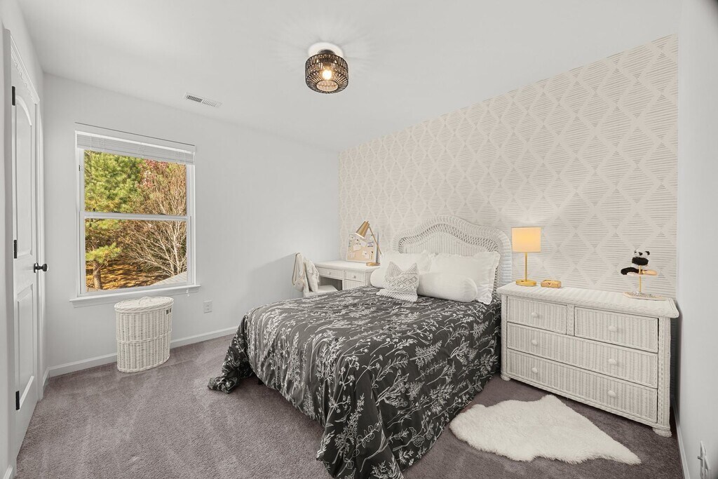 Discover this stunning 3-bedroom, 2.5-bathroom home where design and comfort meet in Mill Creek Falls of Clover. The moment you step inside, you're greeted by gorgeous decor. There is an open-concept floor plan linking the living room, kitchen, and dining area. The kitchen features beautifully updated cabinets, sleek granite countertops, a pantry, a practical island with a breakfast bar, and a charming butcher block top. Step through to the beautiful sunroom—a versatile space perfect for a formal dining room or a quiet retreat. It opens directly onto an oversized patio, ideal for outdoor entertaining and relaxation. The spacious primary suite, located on the upper level, offers a luxurious feel with a granite double sink vanity, a garden tub, and a separate shower. The two secondary bedrooms share a hall bath with a large vanity and a shower/tub combo. The upper level also offers a large loft perfect for an office, media, or book nook. The large laundry room is also on this level. The backyard has raised beds for flowers or gardening and a nice storage shed. The community has an abundance of amenities and is close to all Lake Wylie has to offer. Washer/dryer offered but not maintained by the owner. Pets Conditional. **No Cats**.
