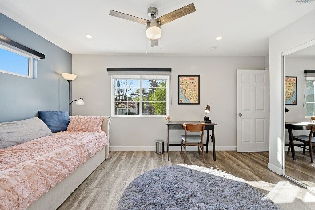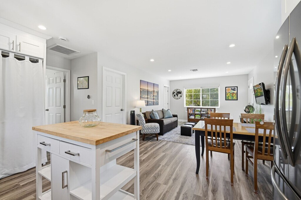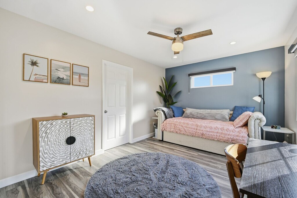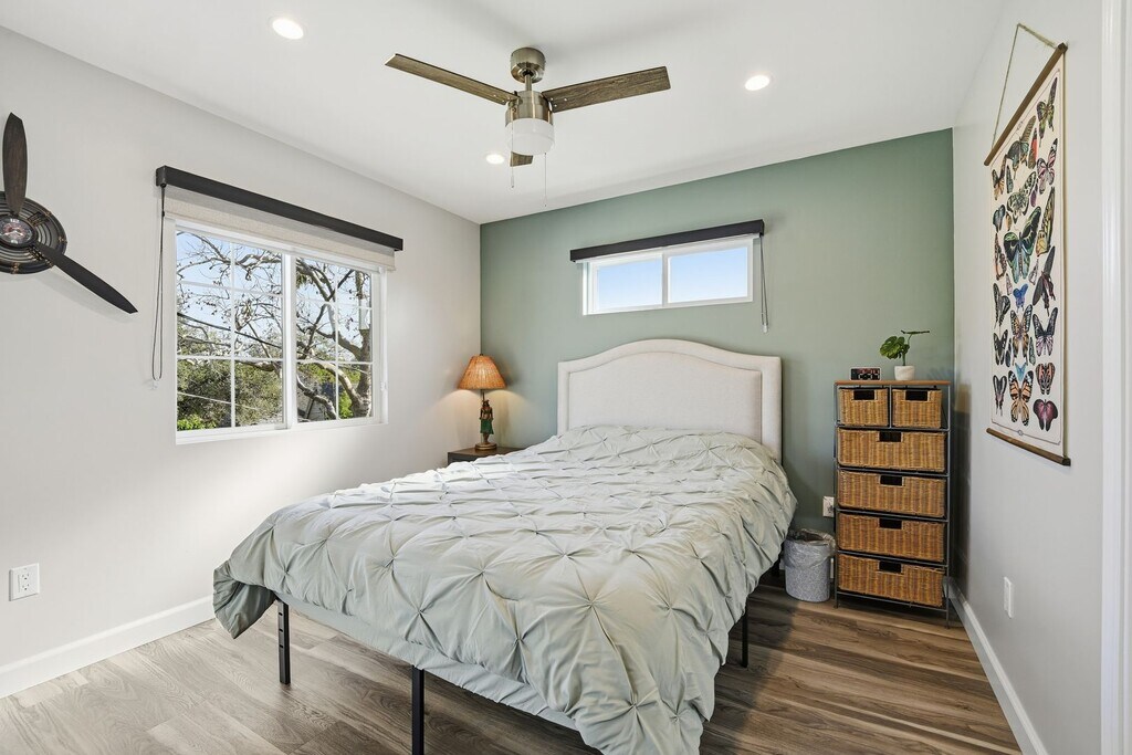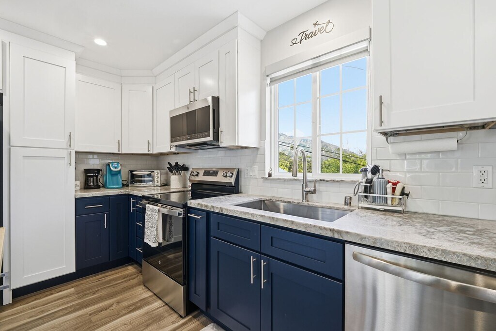 Enjoy comfort and privacy in this beautifully constructed standalone ADU located above the garage with its own private entrance. Offering over 800 sqft of thoughtfully designed living space, this 2-bedroom, 1.5-bath home combines modern finishes with everyday convenience. The spacious kitchen features elegant quartzite countertops, abundant cabinet storage, and comes fully equipped with a refrigerator, electric stove, microwave hood, and in-unit laundry. The full bathroom includes a double vanity, and luxury vinyl plank flooring runs throughout the home for a sleek, contemporary feel. This light-filled unit offers stunning mountain views, a small private patio, and one dedicated off-street parking space. Furnished with all furniture and household necessities—just bring your suitcase and move right in. Located on a quiet street, utilities include trash and water, plus solar-powered electricity for added efficiency.