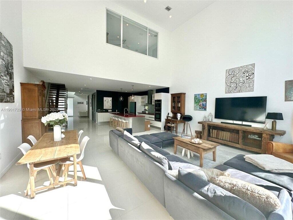 Stunning 4-bed 3-bath modern home situated in the heart of Miami. This two-story 2,547sf residence features volume ceilings, floor-to-ceiling windows and sliding doors that flood the interior with natural light. Porcelain flooring throughout. Gourmet kitchen with island, quartz countertops, stainless-steel appliances, and high-end finishes. Enjoy serene views of the pool area while relaxing. 1 bedroom and full bath on the first floor for guests or home office. Covered carport and a driveway for up to four vehicles. Exceptional curb appeal with a generous backyard featuring a pool, BBQ area, and lush landscaping—perfect for entertaining. No HOA approval. Furniture available to tenants. Ideally positioned just minutes from beaches, Brickell, Coral Gables, and Coconut Grove.