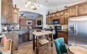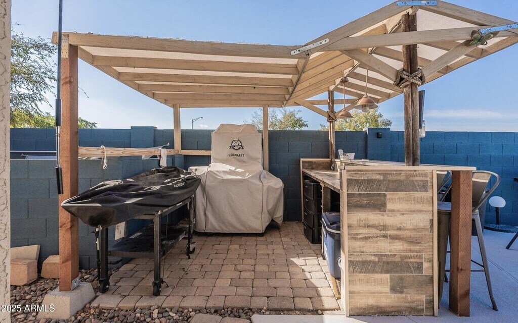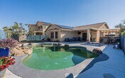 Welcome to this well-maintained and nicely updated 3 bedroom,2 bathroom home in Surprise. The interior features an upgraded kitchen with granite countertops,shaker cabinetry,glass tile backsplash,and stainless appliances. Tile flooring,updated lighting,ceiling fans,and newer blinds provide a clean and comfortable feel throughout the home. A modern HVAC system installed in 2021,a mini-split A/C unit in the garage,and extensive attic insulation help keep the home cool year-round and contribute to very low APS bills. The property also includes owned solar,offering consistent monthly savings for the tenant. The backyard is set up for easy Arizona living with a large pool,synthetic turf,and a built-in Tiki bar. Pool motor and tank have been recently updated,and pool service is included. Outdoor furniture,smokers/grills,and the patio TV may remain for tenant use if desired. Washer,dryer,and a second refrigerator in the garage are also included. A security system with multiple cameras is installed and can be activated under the tenant's own account. Located near Loop 303 and Greenway Road,the home offers quick access to shopping,dining,and local amenities. This property combines thoughtful upgrades,low utility costs,and an inviting outdoor spacean excellent option for anyone looking for a comfortable and efficient home in Surprise.
