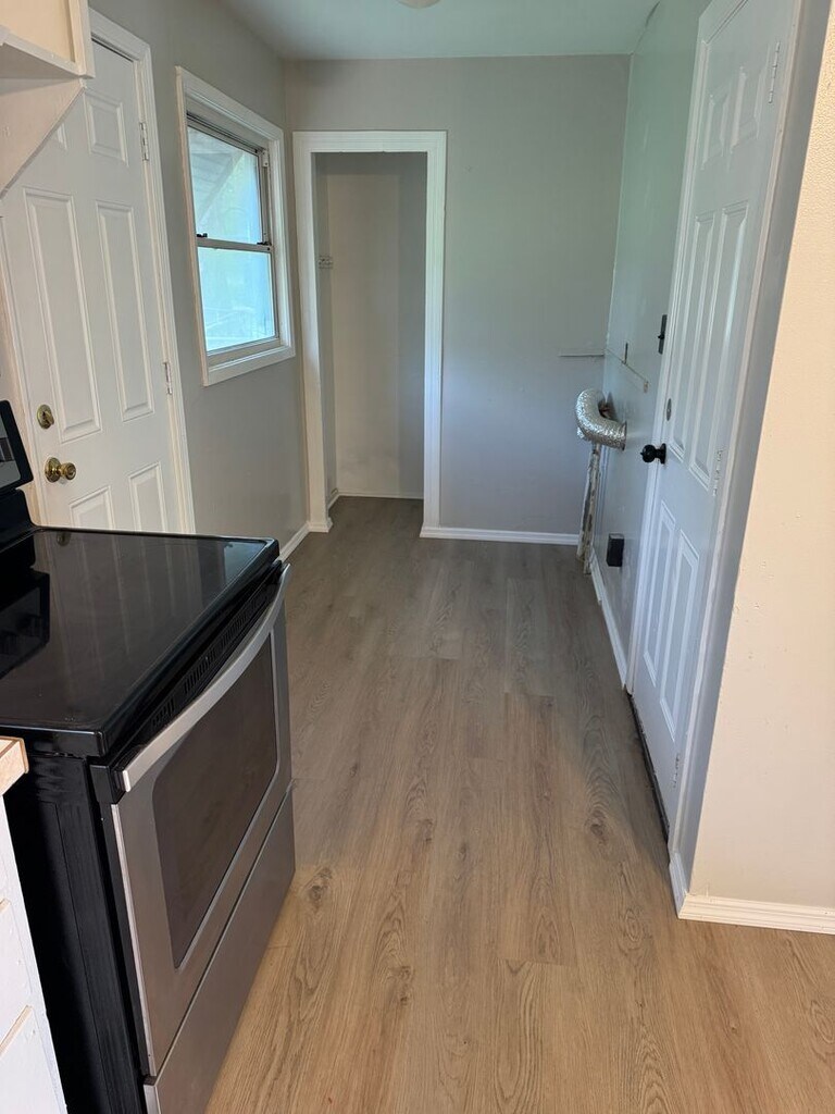 This three bedroom, one bath, home has a row of windows in front living room and continued good natural light throughout the home. It has an attached one car garage.