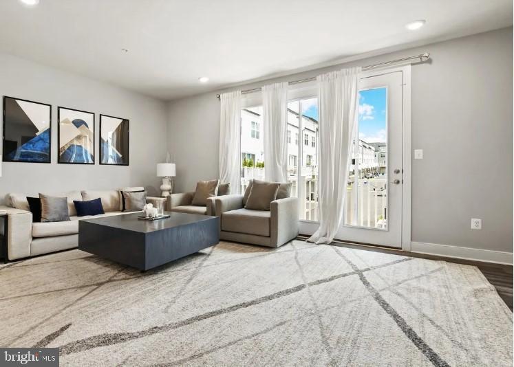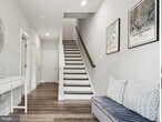 Welcome to this stunning, nearly new townhouse built less than 6 years ago! This beautifully maintained home showcases an exceptional blend of modern design, spacious living, and unbeatable convenience to nearby amenities. Featuring 4 bedrooms, 3 full bathrooms, and 1 half bathroom, this home offers 9ft ceilings and an inviting open-concept main level perfect for both everyday living and entertaining. The gourmet kitchen is a true highlight, boasting stainless steel appliances, a massive center island, granite countertops, and sleek cabinetry. The seamless flow into the dining and living completes the open floor plan concept. The main level also includes a large pantry and a convenient half bath. Just off the living room, enjoy a private balcony ideal for relaxing or grilling. On the entry level, you'll find a versatile flex room that can serve as a home office, fitness room, or easily be converted into a fourth bedroom, offering endless possibilities to suit your needs. Upstairs, the luxurious primary suite features a spacious walk-in closet and an en-suite bathroom complete with dual vanities and a glass-enclosed shower. Two additional bedrooms and a well-appointed hall bathroom—with a double sink and a tub/shower combination—provide ample space for family or guests. A conveniently located laundry area completes this level. The upper level offers a generous family room that can also serve as an additional bedroom, along with a stunning rooftop terrace—perfect for outdoor dining, relaxing, or entertaining while enjoying panoramic views.