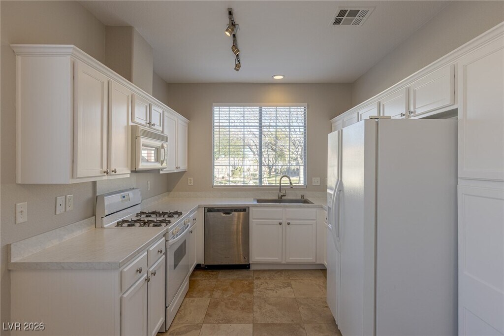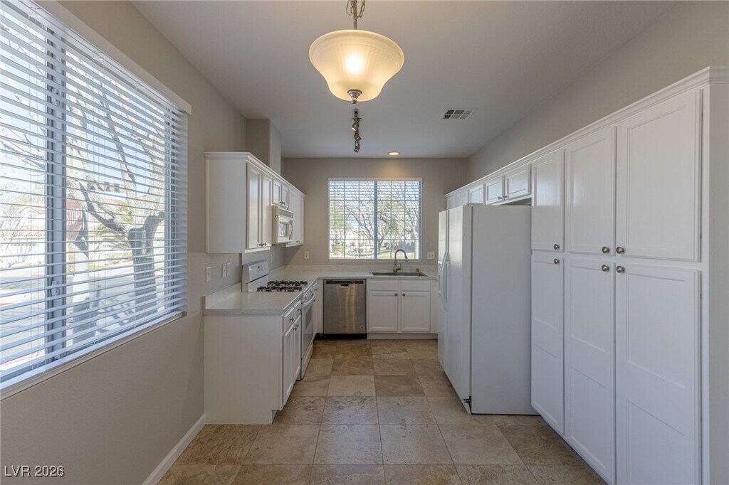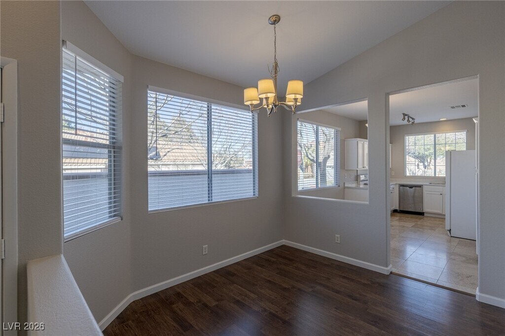 Beautifully renovated 3-bedroom single-story home located in a desirable gated community within Green Valley Ranch! This inviting residence has been refreshed throughout with new two-tone interior paint, refinished cabinetry, new ceiling fans, and tasteful updates that create a light, modern feel. The well-designed floor plan features vaulted ceilings, a spacious eat-in kitchen, a formal dining area, and a cozy fireplace in the family room—perfect for both everyday living and entertaining. Enjoy a generously sized yard, perfect for outdoor relaxation. A community pool and spa are just steps away, and Paseo Verde Park is conveniently located one block from the home. All appliances are included for added convenience. Ideally situated near top-rated schools, parks, shopping, dining, Green Valley Ranch Resort, The District, and easy freeway access—this home offers comfort, location, and lifestyle in one exceptional package.