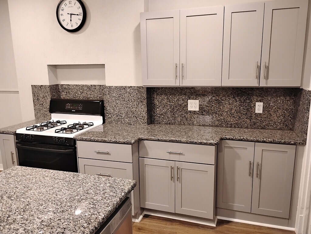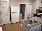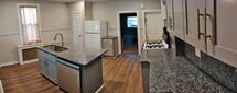 Half double block (half duplex). 3 bedrooms, 1-1/2 bath, in a residential neighborhood. NOT in flood zone. LR, DR, remodeled kitchen with new sink, new granite countertops with matching granite backsplashes, new cabinets and new dishwasher. New flooring throughout. All rooms freshly painted. Three ceiling fans, W/D hookup, full-size basement, large full-width roofed front porch, fully-enclosed back porch, private back patio, private fully-fenced back yard. Gas heat. A stove, refrigerator, new washer, dryer and new dishwasher are all included. Paved OSP for one car. Minutes away from the downtown, shopping, restaurants and major roads. It is essentially impossible to find a rental unit, at any price, with ALL of the following features: ceiling fans, dishwasher, refrigerator, washer, dryer, private patio, two porches, private fenced yard, OSP, out of the flood zone. Landlords live nearby and respond quickly to all issues. All sewer, stormwater and recycling fees paid by landlord, utilities paid by tenant. $1,650 first month's rent plus $995 move-in fee due at lease signing. No security deposit and no last month's rent required at lease signing. Long-term tenants desired. One-year lease. No smoking/vaping indoors. Pets may be considered for a fee. No cats. $5,000 monthly ($60,000 yearly) gross (pre-tax) income required. We are not set up for Section 8 or vouchers at this time. $55 application fee per adult for comprehensive background checks and verifications (credit, employment, income, criminal history, eviction history). Landlord and employer references are mandatory and will be checked. We are proud to offer stress-free living. With many other units you might have to 1) try to find and defend parking spots on the street, 2) waste time washing tons of dishes by hand, 3) worry about the possibility of your home flooding when it rains a lot, and 4) stress about a bad landlord. We eliminate these problems. Send us an inquiry online or at Five Seven Zero 2 8 5 5 2 7 7