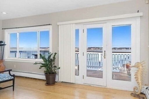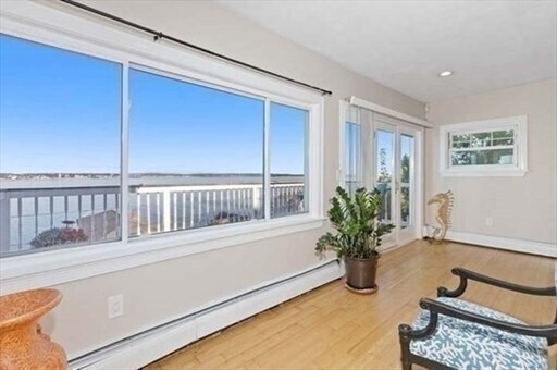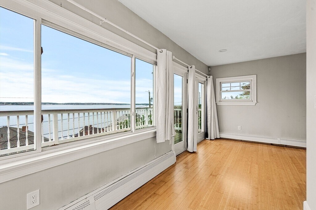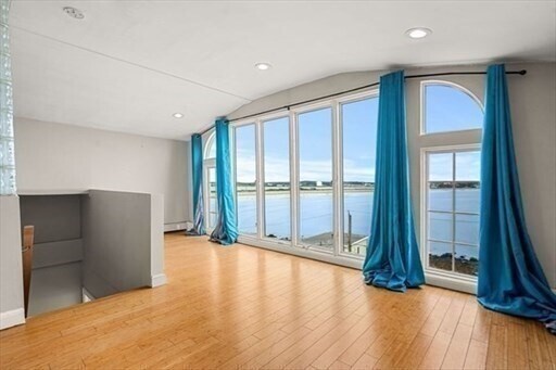 Experience breathtaking panoramic views here. Take advantage of daily walks,runs or cycling along the picturesque shoreline in this charming seaside town. Just minutes away from tennis,pickle ball courts,golfing and 2 beautiful sandy beaches. This residence features an eat-in kitchen w/counter dining,hardwood floors through out,2 bedrooms,2 full bathrooms and 2 fireplaces. The spacious layout provides ample room for customization,such as creating a home office. Capture some incredible sunsets over the sea through the floor to ceiling windows and step outside onto a deck and enjoy the ocean breezes. Ideally situated near the commuter boat and train to Boston,Logan Airport,shopping centers & fine dining options. Easy to schedule a showing. MLS# 73430496
