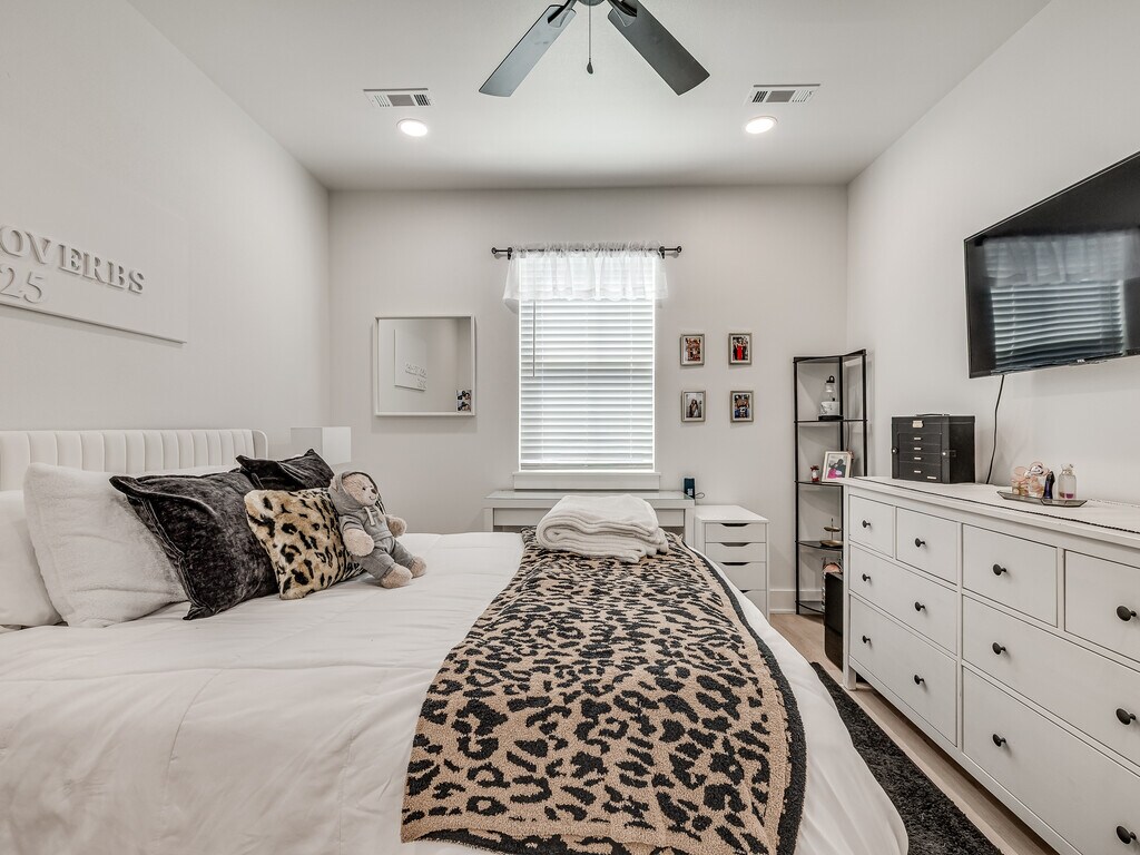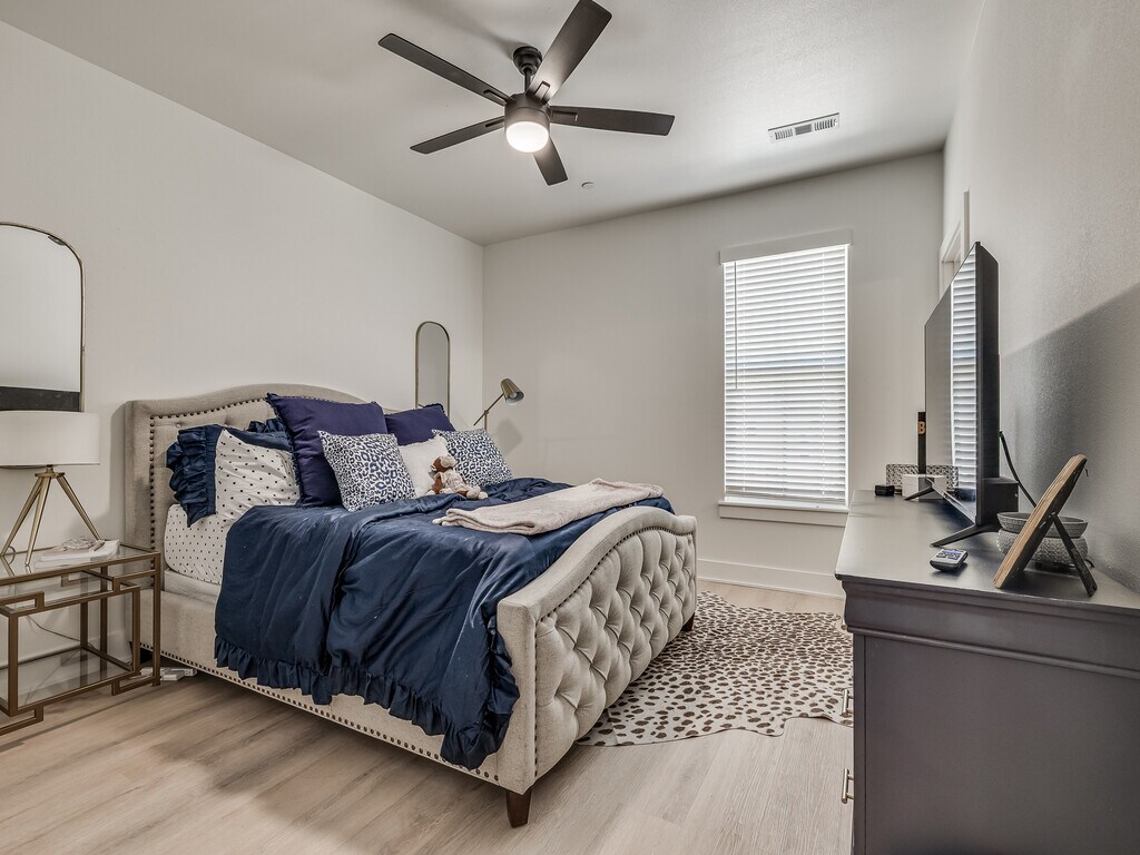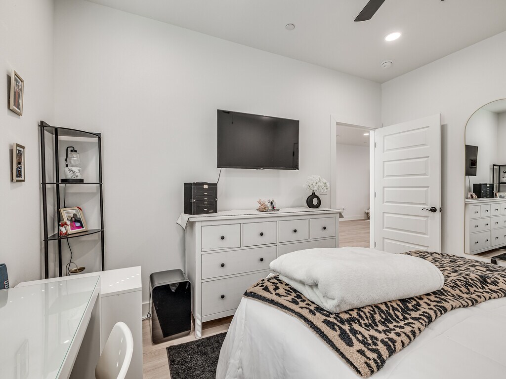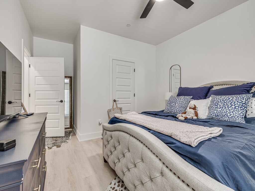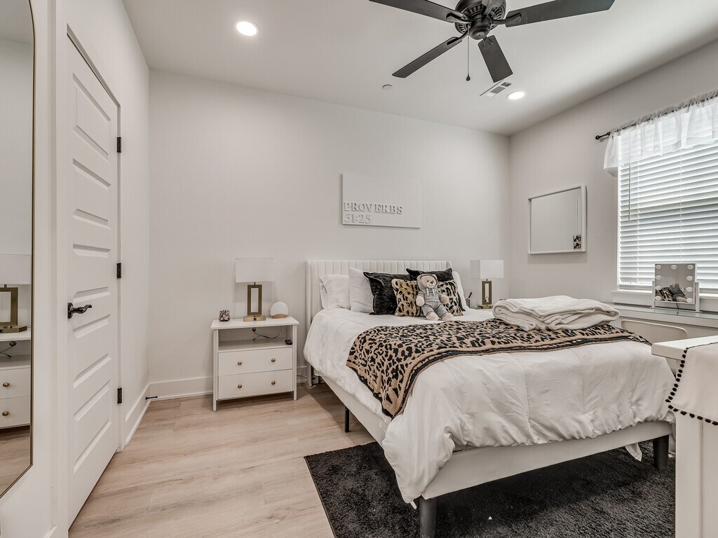 AVAILABLE AUGUST 1ST!!! This brand new 4 bedroom, 4.5 bathroom townhome on N Leverett Ave is one of the best student living options near the University of Arkansas. Each bedroom comes with its own private full bathroom. The open-concept main floor features a spacious living area and a large kitchen loaded with stainless steel appliances, quartz countertops, shaker-style cabinetry, and a gas range. Luxury vinyl plank flooring runs throughout, and every room has a ceiling fan. Dedicated off-street parking right at your front door. Unfurnished so you can make it your own.