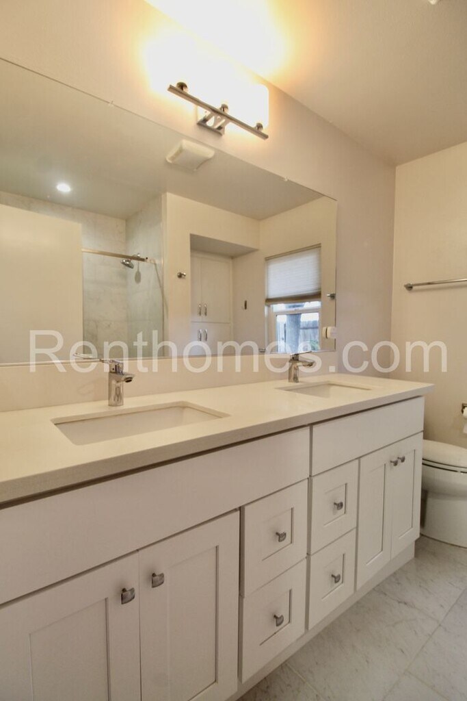 Welcome home to this beautifully remodeled single level home in the 55+ Seven Oaks community of Rancho Bernardo. Conveniently located about 2/10 mile from the Seven Oaks community facilities including community pool, spa, shuffleboard and many clubs and activities. Near Shopping and freeway access. Dual pane windows and laminate wood flooring throughout. Living room has recessed lighting and a gas log fireplace. Eat in kitchen has recessed lighting, sparkling granite counters and stainless steel appliances. Bedroom #1 has a ceiling mounted light fixture and direct access to the hall bathroom. Spacious hall bathroom has tile floors, quartz vanity, custom cabinetry and stainless-steel appliances. Master bedroom has a ceiling mounted light fixture, 2 closets (one with mirrored wardrobe doors), alcove that is perfect for a desk or reading chair, tile bathroom floors, quartz vanity with double sinks and a tub/shower combo. If you are interested, please drive by the home to see if the location and neighborhood meet your needs, then call American Heritage Properties at and we will be happy to set an appointment to show you the home. To see our complete listings or to apply now visit our website at