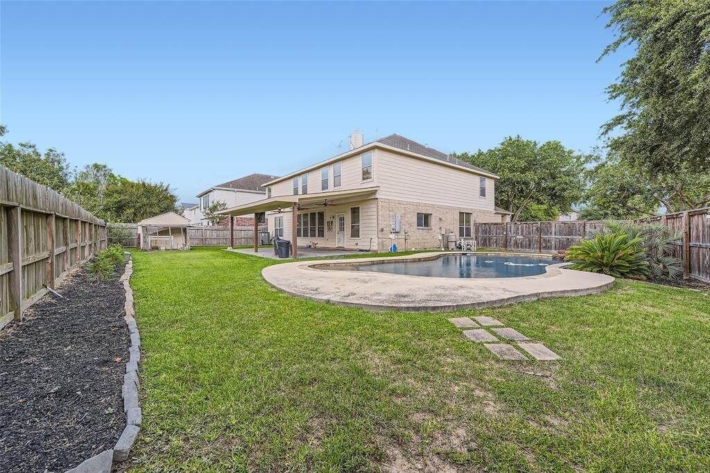 This stunning property boasts over 3500 sq ft of spacious living area,featuring multiple living and dining spaces,including a formal living room,dining room,family room,and upper game room. The gourmet kitchen is equipped with a large center island,gas cooktop,built-in oven,and breakfast nook. A main level den/office provides the perfect space for remote work. The luxurious primary bedroom features a serene bath en suite with separate shower,soaking tub,double sinks,and walk-in closet. The backyard oasis is perfect for relaxation and entertainment,with a covered patio,sparkling in-ground pool,and ample space for grilling and BBQing. Recent updates include a fairly new AC,renovated pool,new fences,and interior renovations,and a clean inspection report is available. MLS# 74962475