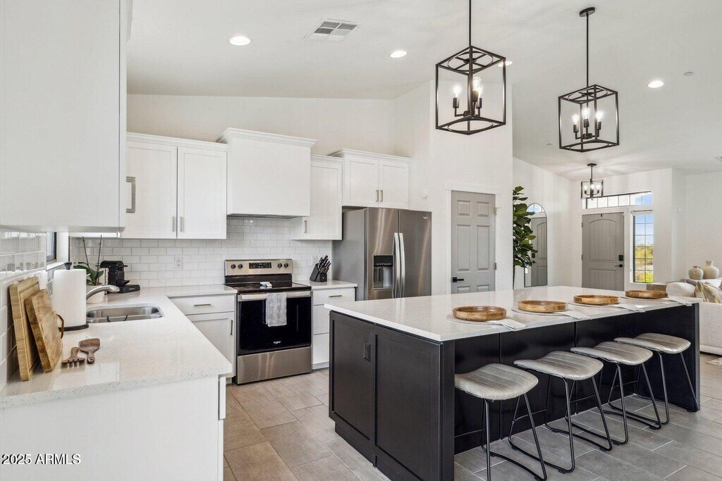 Stunning Modern Spanish Custom Home built in 2023. Nestled on a sprawling 1.39-acre lot in picturesque Fountain Hills,this single-level,no-stairs home offers a perfect blend of modern luxury and timeless design. With breathtaking views of Red Mountain,this property is a must-see. Interior Highlights: Expansive vaulted ceilings,quartz countertops throughout,a spacious kitchen featuring a 9ft island,tile flooring throughout. Exterior Features include a 12-foot locking RV gate,circular driveway,private pickleball court,stylish aluminum pergola,Tesla EV charger in garage.