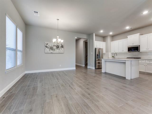 Available Date: November 1, 2025. Gorgeous 2022 1.5-Story Home in Artesia, Prosper ISD. This stunning 1.5-story home offers a highly functional floor plan with 4 bedrooms, 3 full baths, and an upstairs retreat featuring a game room, bedroom, and full bath. The open-concept living area showcases contemporary wood-look tile flooring, a direct-vent gas fireplace with electric starter, and an island kitchen with frost white quartz countertops, tile backsplash, and stainless steel appliances. Perfect for entertaining, the kitchen flows seamlessly into the dining and family rooms. The private primary suite includes a spacious walk-in closet, dual vanities with framed mirrors, garden tub, and separate shower. Two additional bedrooms downstairs provide flexibility for family or home office use. Recent updates include brand new plush carpet, fresh interior paint, framed mirrors in all bathrooms, epoxy-coated garage flooring, and ceiling fans throughout. Energy-efficient features include:16 SEER Trane HVAC, Radiant barrier, Tankless water heater, Wi-Fi thermostat, R-15 blown insulation, Community amenities include 2 resort-style pools, clubhouse, playgrounds, and miles of trails. Conveniently located near shopping, dining, PGA, The Fields, and within highly rated Prosper ISD. This home is move-in ready and offers modern style, energy efficiency, and an unbeatable location!