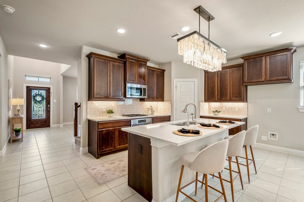 This home is giving main character energy! With 4 bedrooms,3 baths,and two bedrooms downstairs,it’s made for real-life flexibility. The open floor plan flows effortlessly,featuring sleek tile and engineered wood floors,bold modern finishes,and tons of natural light. The kitchen steals the show—stainless steel appliances,quartz countertops,a nice size island,and room to gather. The primary suite brings total spa vibes with a jetted tub,double vanities,and a glass shower. Upstairs? A spacious game room,two extra bedrooms,and a fresh shared bath. Outside,unwind under the covered patio or kick back in the private backyard with no back neighbors. Sprinkler system,water softener,and all the upgrades are already here. Located in the vibrant community of Bridgeland with lots of trails,parks,sports fields,kayak park,and disc golf course—this one’s not just a home,it’s a lifestyle. MLS# 31290996