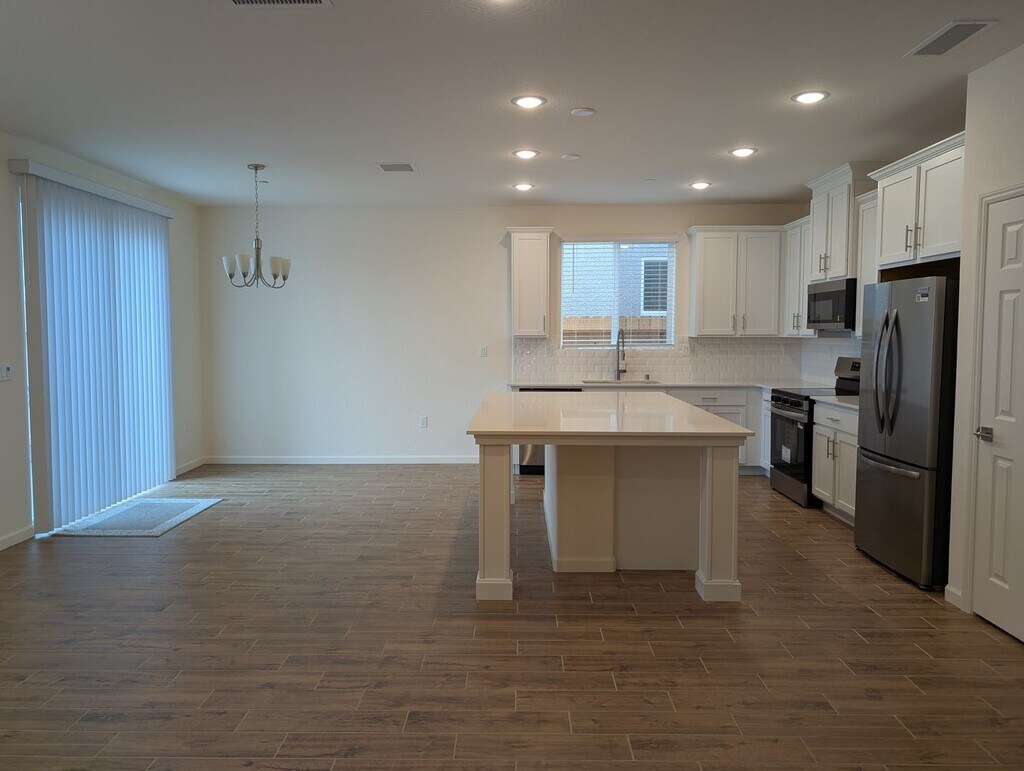 New Wilson home offering modern amenities, solar and a nice floor plan. Bonus room with den or office space. Welcome to your dream home in the Dry Creek area of Clovis, CA. This newly constructed Wilson home boasts modern and updated components throughout its spacious layout. With three bedrooms and two full bathrooms, this home offers ample space for comfortable living. The modern kitchen, complete with a dishwasher, electric range, and a center island, is a chef's dream. Refrigerator. Washer and dryer, as is. An additional office/den provides a perfect space for work or study. The home also features a living room and dining area, perfect for entertaining or relaxing. The property includes a two-car garage with an automatic opener, and is electric vehicle charger ready. The home is equipped with solar power, central heating and air conditioning, and ceiling fans, ensuring comfort in all seasons. Laundry hook-ups are conveniently provided. The low maintenance landscape adds to the appeal of this property. This home is ready for you to move in and start enjoying the benefits of living in a new, modern home.