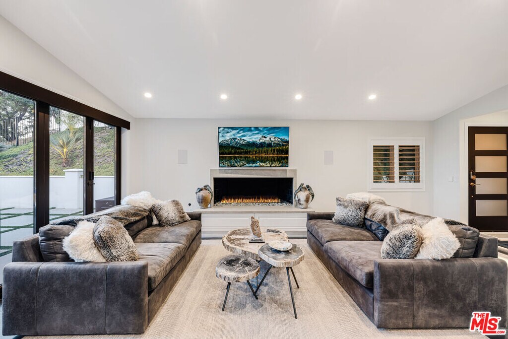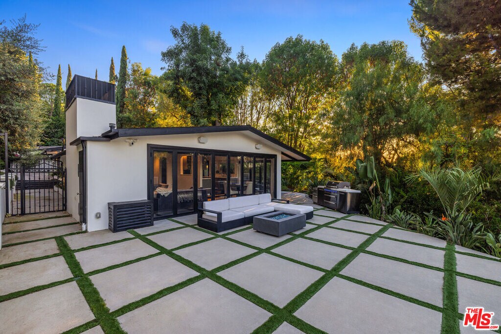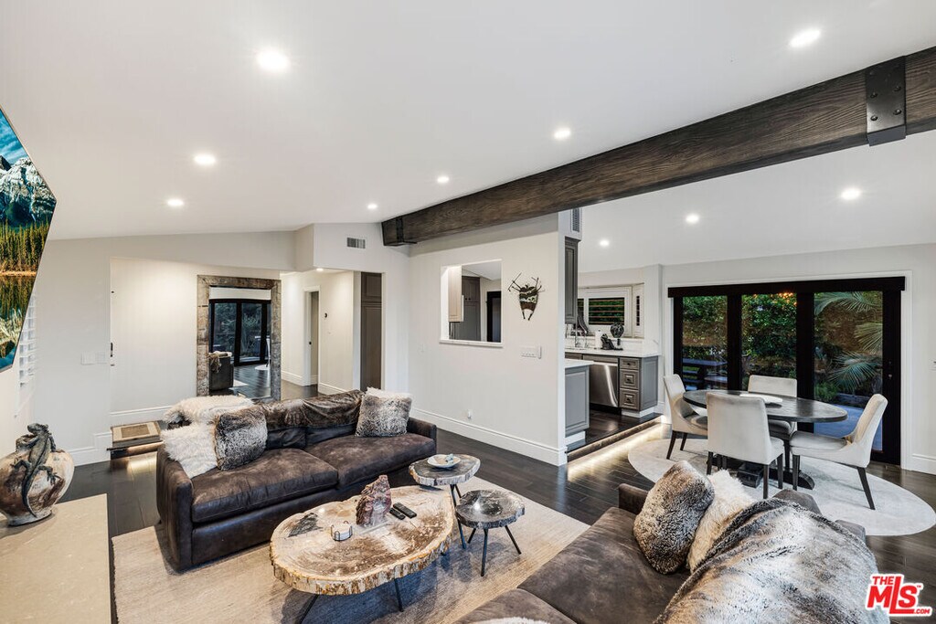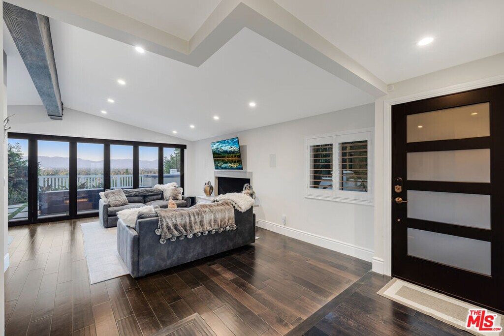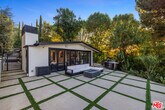 Nestled in the coveted Encino Hills, south of Ventura Blvd, this fully furnished, single-story contemporary retreat blends privacy, modern comfort, and effortless living. Situated at the end of a semi-private driveway and surrounded by mature trees, the home offers tranquil seclusion while remaining just minutes from the vibrant energy of the valley below. An open floor plan connects the living spaces to the backyard, with bi-folding glass doors creating a seamless indoor-outdoor flow. The spacious living room features vaulted ceilings and a fireplace that opens to the dining area and chef's kitchen. Natural light floods the interior, highlighting the rich wood floors and creating a warm, inviting ambiance throughout. The home offers three bedrooms, including a primary suite with a cedar-lined walk-in closet and a beautifully appointed en-suite bath. A versatile bonus room adds flexibility - ideal for a home office, gym, or media lounge. Multiple outdoor areas include a spacious dining patio along with zones for entertaining, a hot tub, and a fire pit - all perfectly positioned for sunset views or stargazing. Recently renovated, the home features updated electrical, plumbing, HVAC systems, and new windows with custom wood shutters, ensuring both efficiency and style. Additional highlights include motorized blackout blinds, a 6 speaker built-in Sonos system that extends into the backyard, motorized skylights, exterior security cameras with a full security system, and high-quality furniture from Arhaus and Restoration Hardware - making this home truly turnkey. Weekly landscaping and spa maintenance is included in the rent along with internet service and an eero mesh wifi network. Conveniently located near top-rated schools, with easy Westside access and proximity to shopping, dining, and Equinox, this hillside oasis offers the perfect balance of luxury, comfort, and convenience. MLS# 25588013