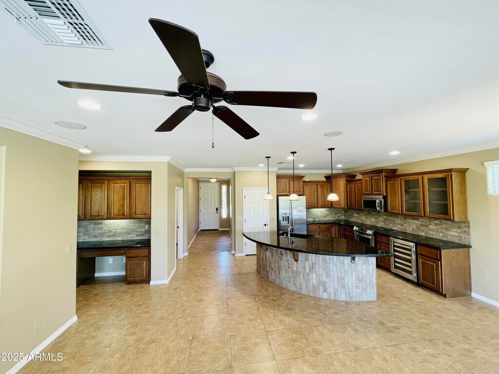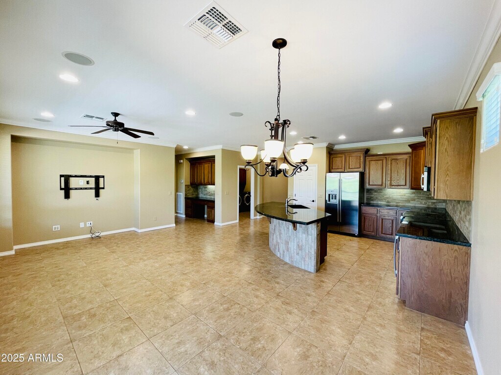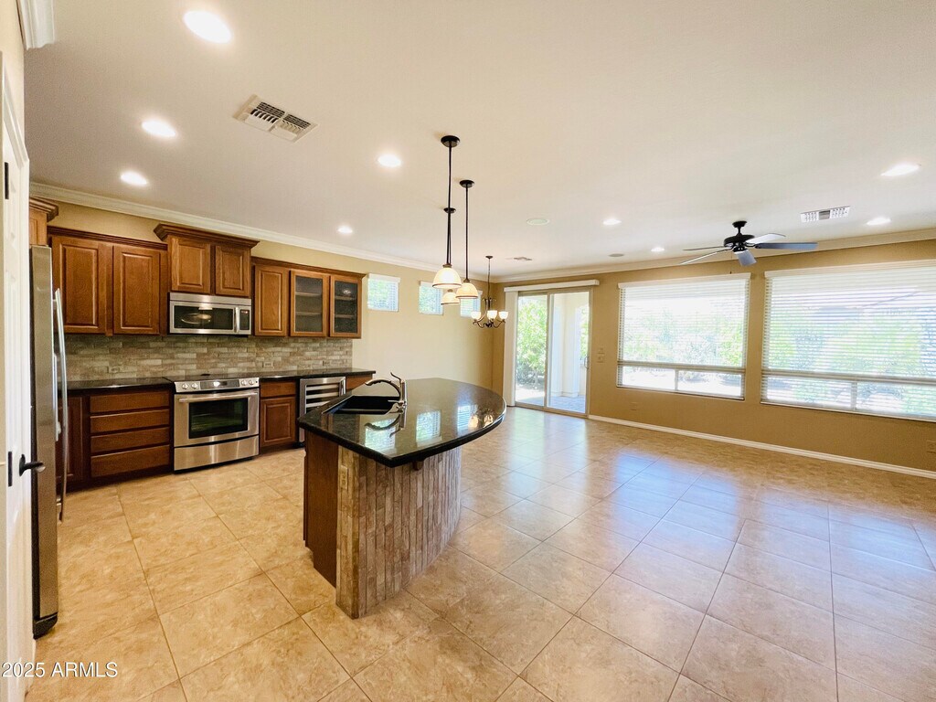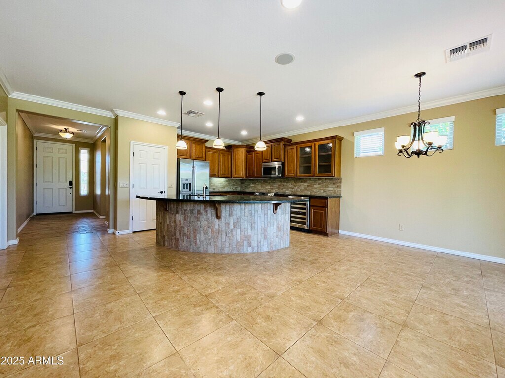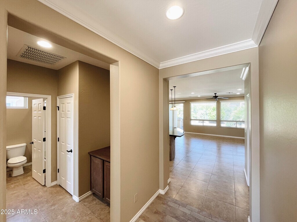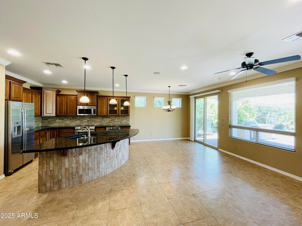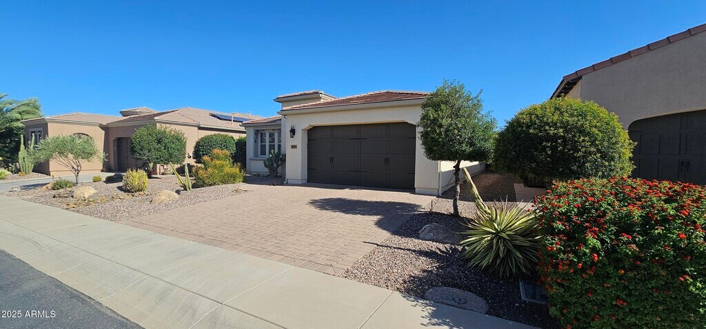 Living in this inviting St. Tropez home in Encanterra with its large array of amenities,feels like an endless vacation. The resort-style community feature two GORGEOUS Clubs available to resident members. La Casa,with approximately 60,000 sqft of indoor and outdoor areas,is a social haven for discovering new interests,clubs,and friendships. The second clubhouse,The Algarve provides a tranquil 8,000-square-foot oasis for relaxation,and refreshment,both inside and out. This alluring home offers an exceptional opportunity,featuring a freshly painted exterior and beautifully manicured landscaping. The broadened paver driveway adds a touch of elegance to the home's approach. A spacious north-facing backyard boasts an extended paved patio around an almost grove-like area filled