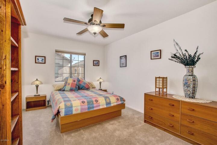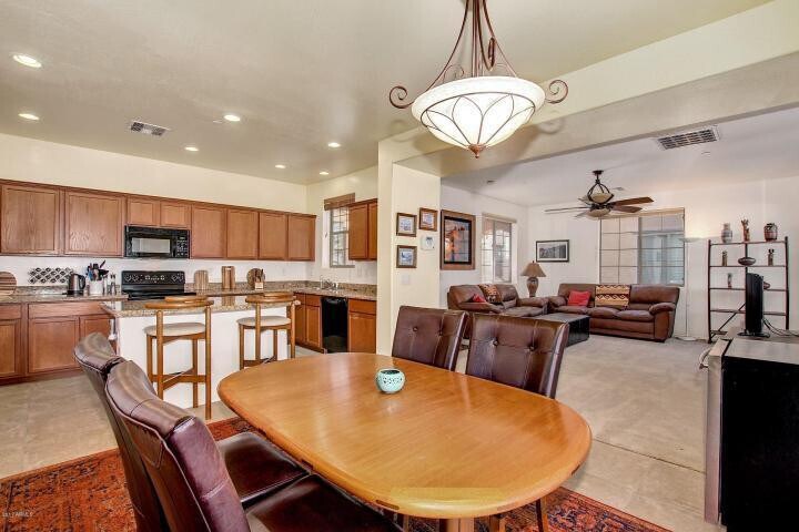 This four-bedroom home features access to a community pool,tennis courts,playground,BBQ grills and community center,plus a private patio with pavers! Inside,there is recent paint throughout. The kitchen has granite countertops,pantry and a full set of appliances. The home has two Master Bedrooms,with a second-floor Master Bathroom that includes double sinks,huge walk-in closet and separate tub and shower. The third floor houses the second Master Bedroom with its own bathroom and walk-in closet that could also be used as an office or playroom. Other perks include a 2nd floor laundry room (with W/D) and two-car garage. You will appreciate the close proximity to lots of shopping/dining,Costco,and Loop 202 freeway access. MLS ID 7019511