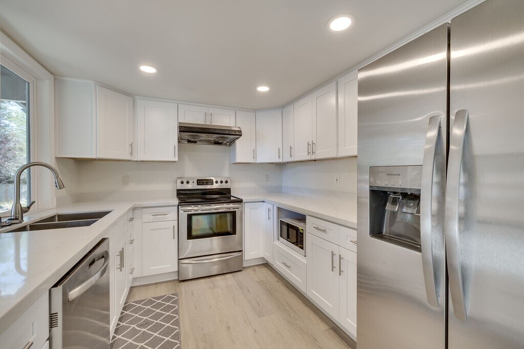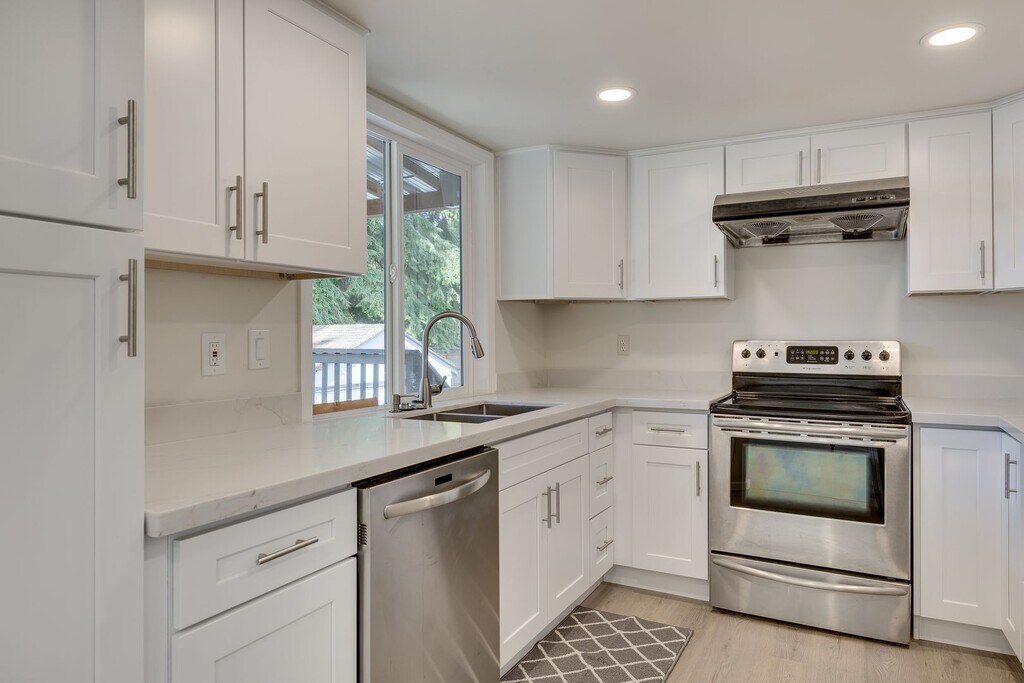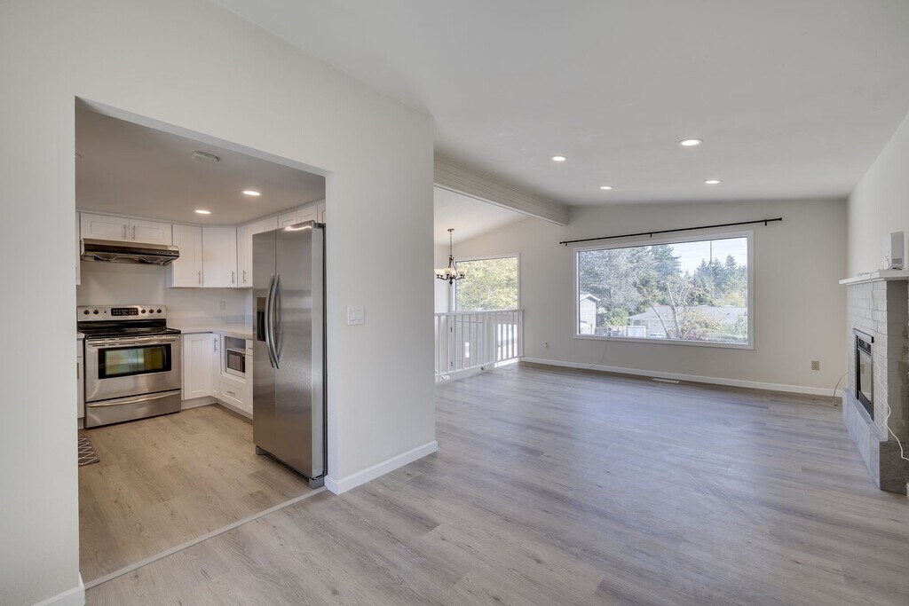 SCHEDULE SHOWING HERE: Welcome to your newly renovated home! This beautifully updated 5-bedroom, 2-bathroom home offers comfort, style, and flexibility for today’s modern lifestyles. Located on a quiet cul-de-sac near top-rated Shoreline schools with easy access to major freeways, and the transit station...convenience meets tranquility in this ideal location. Upstairs features a full remodel, including a stunning brand-new kitchen with crisp white cabinets, sleek stainless steel appliances, and new wood flooring throughout. Enjoy the luxury of a completely renovated bathroom and fresh paint in every room. Downstairs, you’ll find a second full kitchen, perfect for multi-generational or multi-family. With its own private living space and full bathroom. Outside, a large, fenced yard features a covered deck off main living room...space to play, relax, or entertain. Don’t miss this rare rental opportunity that combines style, space, and location. Schedule your tour today and make this versatile home yours! Home is professionally managed by VerraTerra Property Management. Terms: - 12 month min lease term - $54 application fee per adult - $200 admin fee - Deposit equal to one months rent due prior to move in - First and Last months rent due at move in. Last months rent negotiable based on strength of application. - Utilites NOT included in rent/ billed separately - Tenant responsible for landscaping maintenance - Tenant does NOT have use of storage shed in backyard - NO PETS