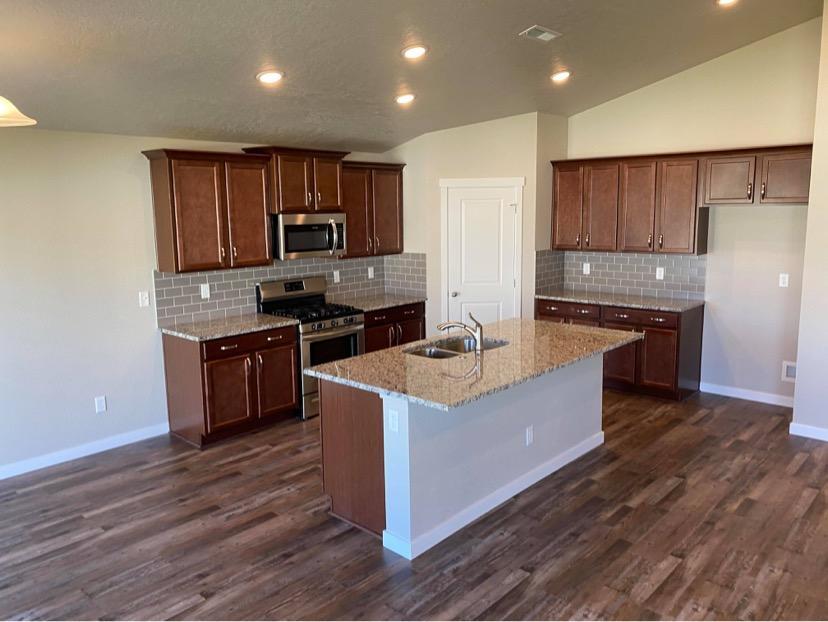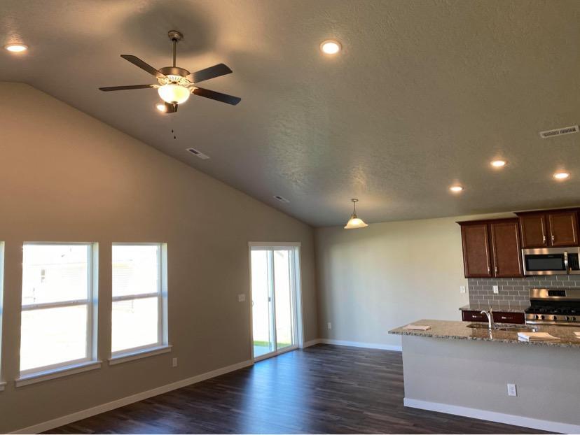 Welcome to your 4 bedroom home. The open kitchen and living room are warm and inviting. You'll love relaxing in your private master retreat, away from the chaos life can bring. This home features vaulted great room ceilings, dual master sinks, fully fenced yard, fridge, washer dryer included. Apply online Home will be ready 4/26/26