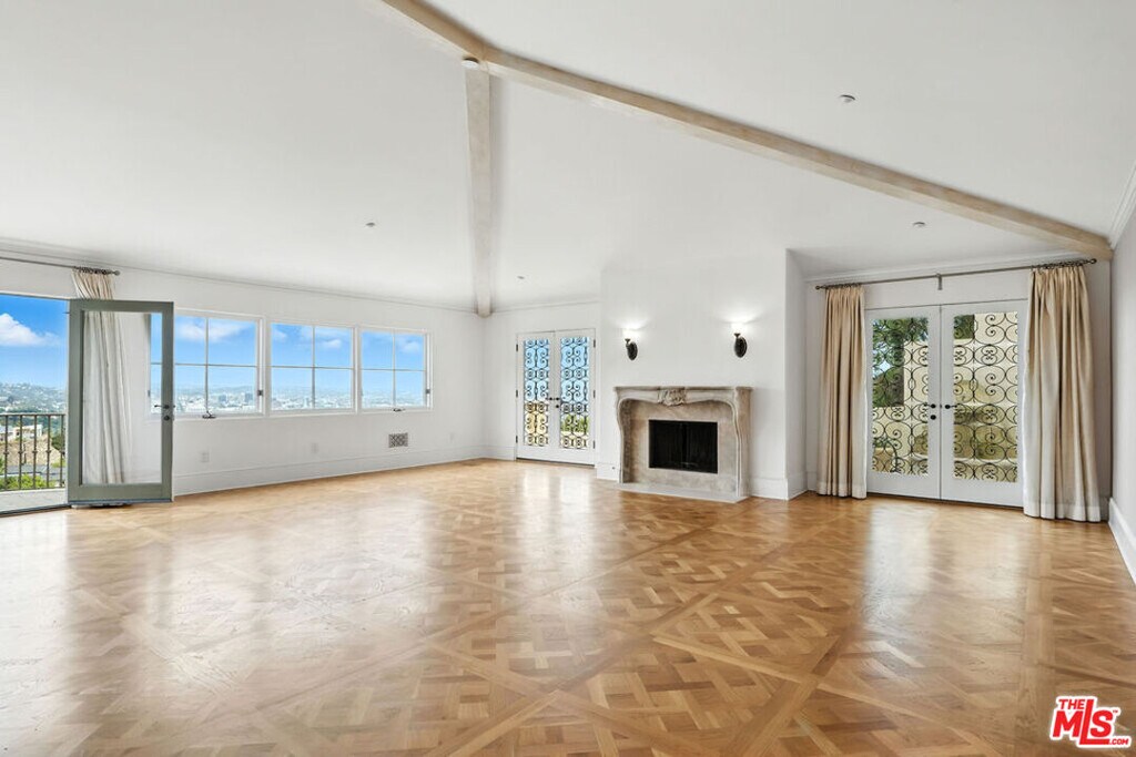 Set above the Chateau Marmont on a quiet cul-de-sac, this 6,687 square foot estate delivers scale, privacy, and unobstructed city views rarely found at this price. A dramatic two-story entry and sweeping staircase introduce the home, with an elevator connecting all three levels for seamless living. Twelve-foot ceilings, Euroline doors, and expansive glass frame panoramic vistas from nearly every room and open to multiple terraces and a mosaic-tiled pool and spa.The main level includes a large living room with terrace access, a formal dining area, and a chef's kitchen outfitted with Sub-Zero, Thermador, and Miele appliances. Upstairs, the primary suite offers 16-foot ceilings, a fireplace, steam shower, soaking tub, sauna, dual closets, and two private terraces positioned for sunrise and sunset views. Three additional en-suite bedrooms complete the floor.Additional features include a media room, office with its own terrace, interior laundry room, a tranquil garden with mature lemon trees, and a four-car garage with additional parking. Minutes from the Sunset Strip yet completely private, this home combines space, scale, and views in one of the most coveted pockets above West Hollywood. Flexible leasing terms. MLS# 25583587