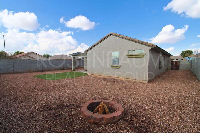 Welcome to this charming and beautifully maintained single-story home — a place where comfort, style, and functionality unite. From the moment you walk through the front door, you’re greeted by an open, airy layout accentuated by vaulted ceilings that elevate the space and create a welcoming ambiance. The generous living area flows seamlessly into a kitchen that’s both practical and stylish — equipped with modern stainless-steel appliances, abundant cabinetry, a handy pantry, sleek countertops, and a cozy eat-in breakfast nook. A breakfast bar adds extra convenience and a touch of sophistication, making it an ideal spot for casual meals or morning coffee. When it’s time to unwind, you’ll retreat to one of three spacious bedrooms. New flooring and new carpet. The primary suite stands out with a roomy walk-in closet and an en-suite bath, offering privacy and comfort at the end of the day. A dedicated laundry area with a washer and dryer adds everyday convenience, and a 2-car garage provides ample storage, parking, and practicality. Step through the sliding glass doors off the living room and discover your private backyard sanctuary — a covered patio overlooks a thoughtfully landscaped outdoor space, ideal for relaxing, entertaining, or enjoying quiet evenings under the stars. Because the home sits on a corner lot, you benefit from generous outdoor space and extra privacy. Location is a standout feature for this home. Nearby you’ll find lush parks such as Palmateer Park as well as Estrella Mountain Regional Park — perfect for hiking, biking, and enjoying nature. Shopping, dining, and entertainment are readily available at popular hubs like Goodyear Marketplace and The Market at Estrella Falls, offering a range of restaurants, retail, and leisure options. Close to schools and community amenities, and for sports lovers, Goodyear Ballpark is just a short drive away. We welcome all furry friends of any size! ~ To Apply go to: Please make sure to submit all paperwork required to be approved within 24 hours & ask about our $0 security deposit Move-in Solution Fee option($85/month non-refundable). All adults 18+ must submit a completed rental application, government-issued photo ID, social security card & proof of income (last 30 days of pay stubs, or for self-employed, most recent tax return and six months of bank statements). Applications can't be processed until all documents are received. The application fee is $60/adult (non-refundable). Only complete applications with all documentation, rental verification, and fees paid will be considered on a first-come, first-served basis. Once approved, a holding agreement & earnest money of at least one month's rent must be submitted by the end of business day to secure & hold the property. Earnest money will be applied & credited toward the total required move-in funds. A 1x non-refundable $299 admin fee is due at lease signing. All application fees are NON-REFUNDABLE; please confirm property availability before paying & applying. By submitting, you acknowledge you have reviewed the resident criteria: For any questions or further information, please call Leasing at ext. 2 or email us at Going to IS A REQUIRED PART OF THE APPLICATION FOR ALL APPLICANTS. We love pets! All applicants must complete our third-party pet screening. No charge if you don’t have a pet or have an ESA/assistive animal (documentation will be required). For pet owners, pet application fees are $30/pet via credit card & a $30 fee for additional pets ($25 via ACH). Pets receive a PAW Score, which determines monthly and move-in fees: #5= $45/mo & $299 at move in. #4= $55/mo & $299 at move in. #3= $65/mo & $299 at move in. #2= $75/mo & $399 at move in. #1= $85/mo & $500 at move in. All Rosenbaum Realty Group residents are enrolled in the $75 Resident Benefit Package, which includes HVAC air filter delivery(where applicable), credit building for timely rent payments, $1M Identity Protection, a utility concierge to simplify move-in connections, our top-tier resident rewards program, and more! ~ Fees that apply: $60 App fee/adult. Security Deposit of 1.5x base rent + a 1x $350 maintenance coordination fee + a 1x $299 admin fee due at move-in. ~ Monthly fees are: base rent, 2% monthly admin fee, $75 RBP, partial utilities(if any). Pets OK, fees apply based on $30 Pet Screening. This property allows self guided viewing without an appointment. Contact for details.