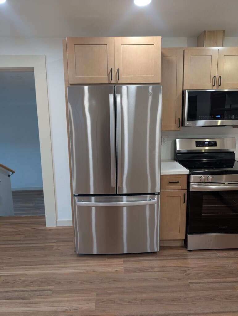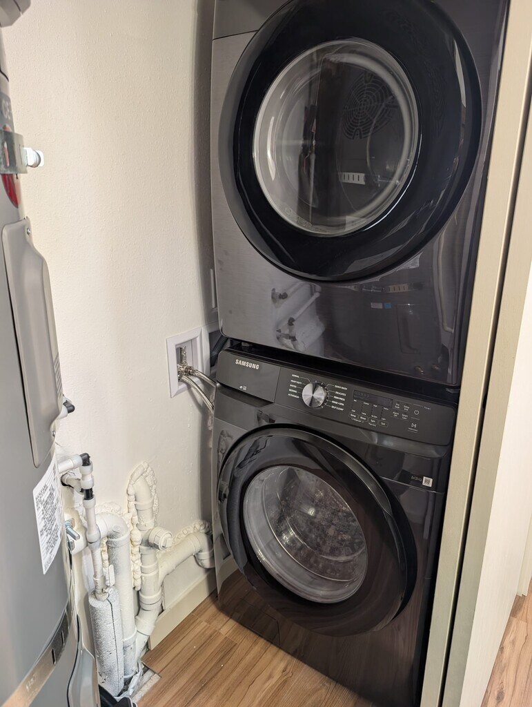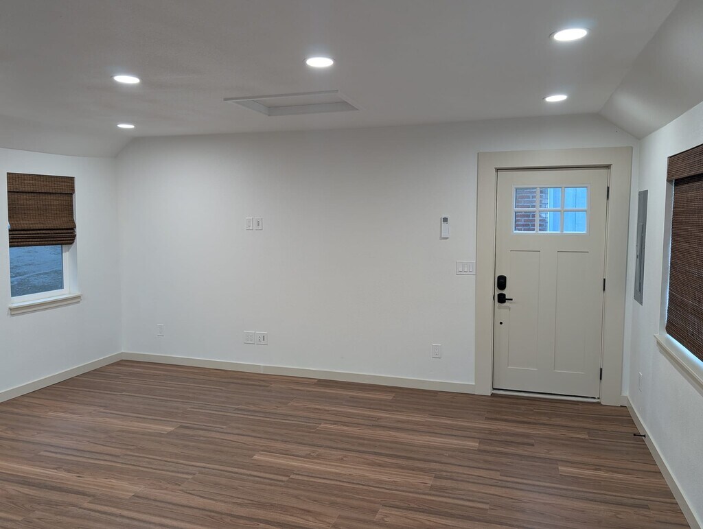 Discover this newly built, detached 1-bedroom, 1-bath unit offering modern comfort and convenience. This thoughtfully designed space features in-unit laundry, a mini-split system for efficient heating and cooling, and an open living area filled with natural light. Step outside to your private deck, perfect for morning coffee or unwinding in the evenings. Enjoy paved off-street parking just steps from your door, plus your own storage shed ideal for bikes, gear, or seasonal items. Located just minutes from I-5, this home offers easy commuting while still providing a quiet, private retreat. With its fresh construction, clean finishes, and functional layout, this unit is the perfect blend of comfort and convenience.